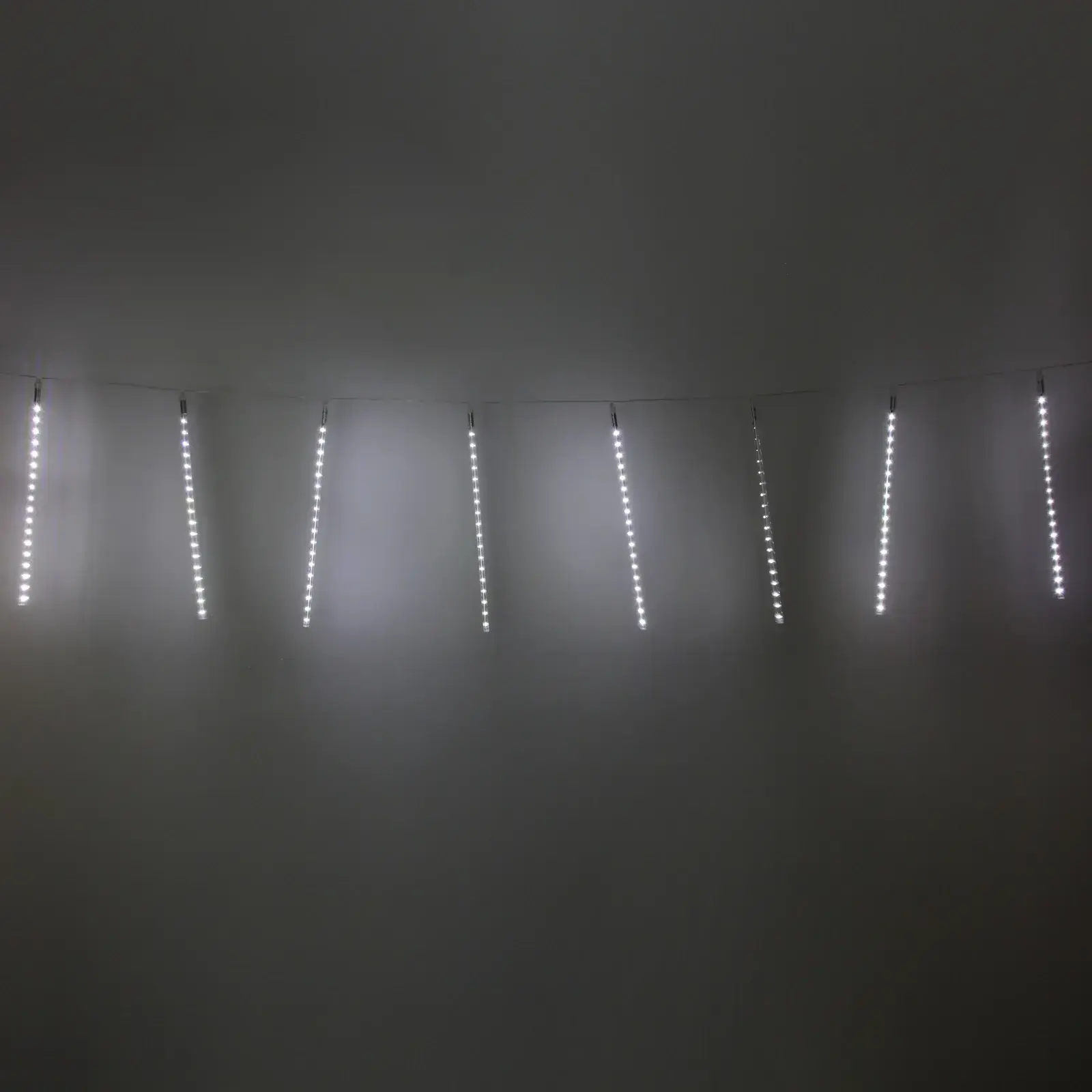 Гирлянда легко устанавливается и подходит для различных мероприятий: от новогодних праздников до летних вечеринок. Она станет отличным дополнением к вашему декору, создавая эффект тающих сосулек, который привлекает внимание и радует глаз. Подключите гирлянду к электросети, и она мгновенно преобразит ваше пространство.