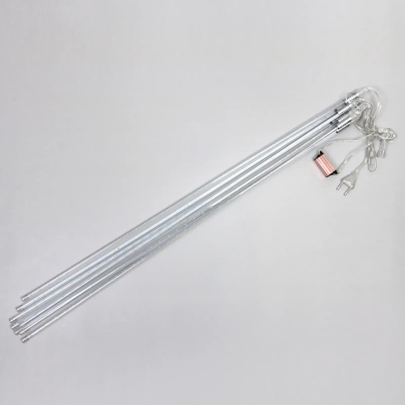 Гирлянда состоит из 8 трубок, каждая из которых равномерно распределяет свет, создавая эффект тающих сосулек. Материалы, из которых изготовлена гирлянда, включают металл и пластик, что обеспечивает её прочность и устойчивость к внешним воздействиям. Длина каждой трубки составляет 80 см, что позволяет создать эффектный визуальный ряд.