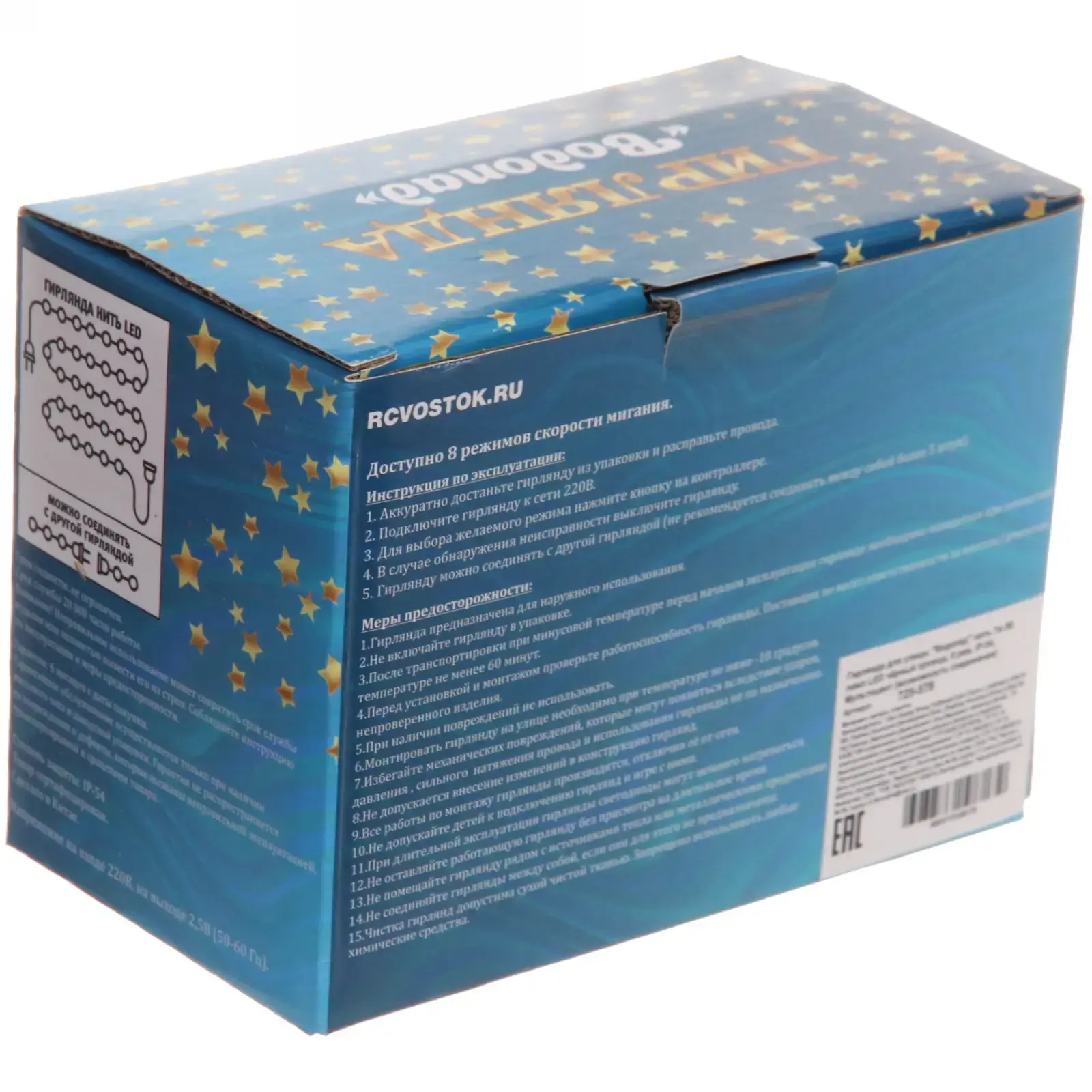 Гирлянда выполнена из качественных материалов: металл и пластик, что гарантирует её долговечность. Размеры лампочек и расстояние между ними оптимально подобраны для равномерного освещения. Упаковка содержит всю необходимую информацию о подключении и эксплуатации, что делает установку простой и понятной.