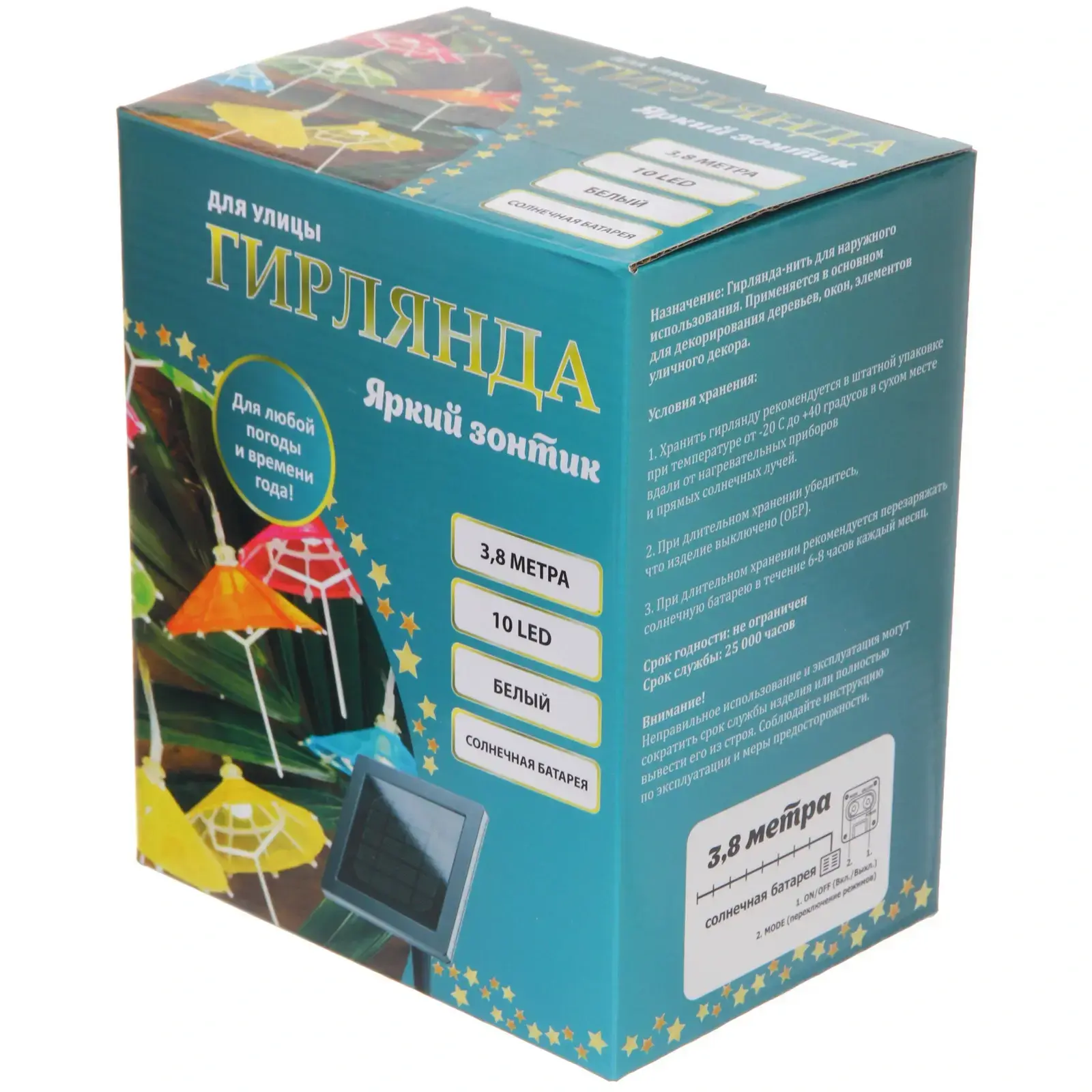 Гирлянда для улицы «Яркий зонтик» — это идеальное решение для создания уютной и праздничной атмосферы на вашем участке. С длиной 3.8 метра и 10 миниатюрными зонтиками, она станет ярким акцентом в вашем саду или на террасе. Каждый зонтик подсвечивается белыми LED-лампами, создавая мягкое и приятное освещение, которое будет радовать вас и ваших гостей в любое время года.