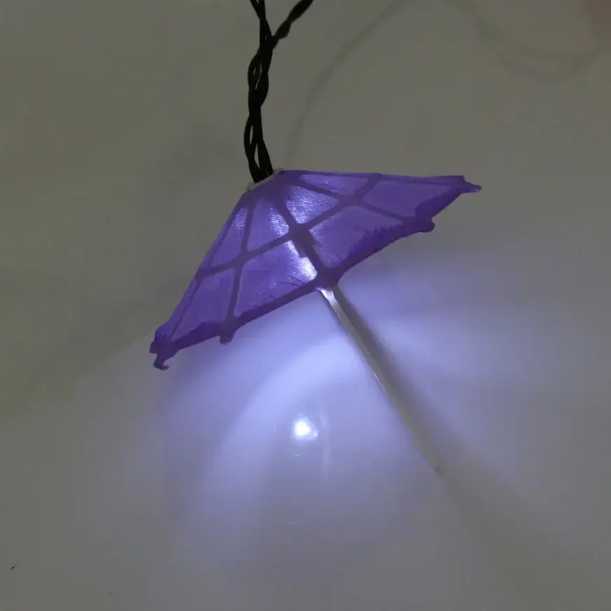 Каждый зонтик имеет размеры 8х7 см и выполнен из прочного пластика, что обеспечивает долговечность и надежность. Черный провод соединяет зонтики, создавая аккуратный и стильный вид. Гирлянда станет отличным дополнением к вашим праздникам, вечеринкам или просто для создания уюта в вашем доме.
