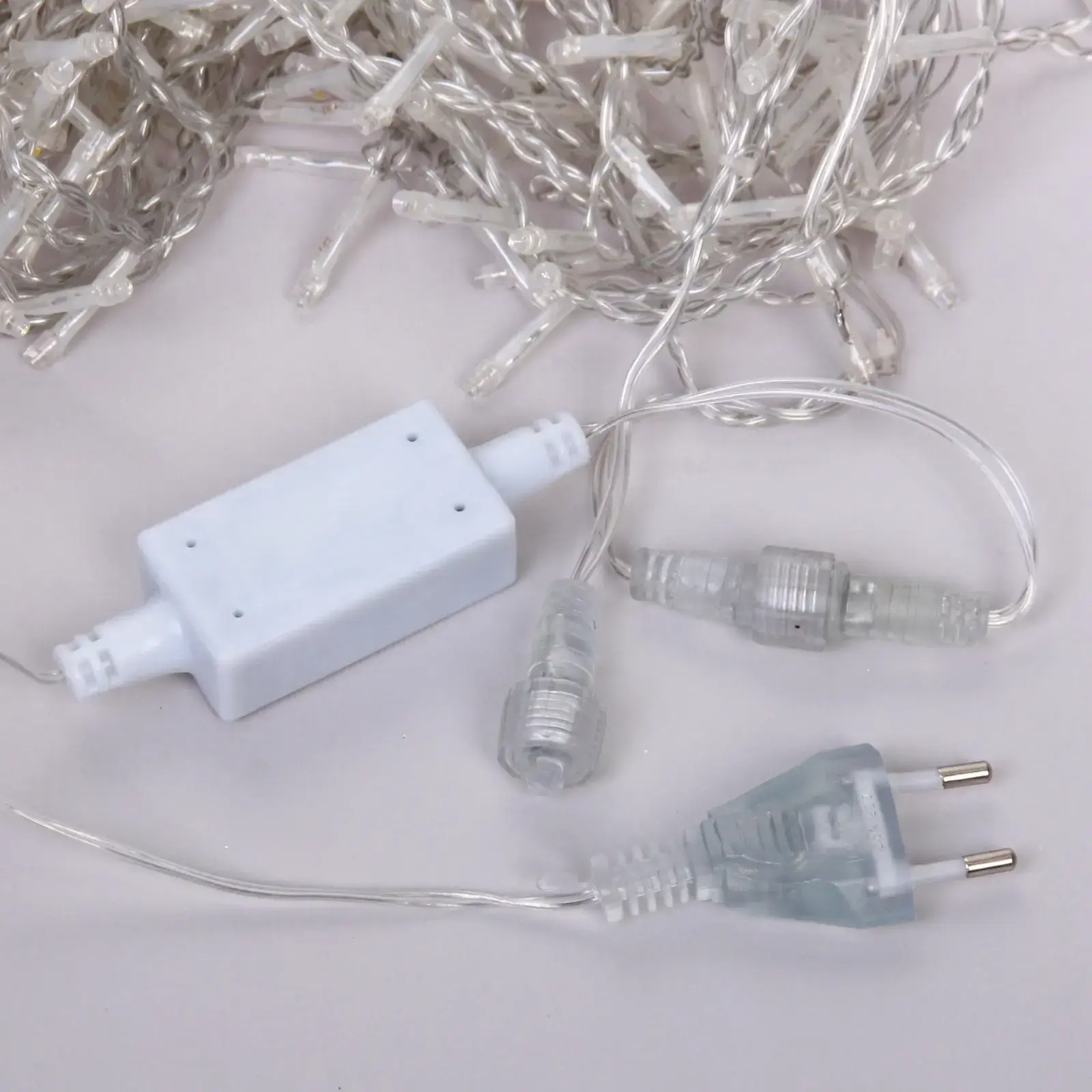 Гирлянда выполнена из качественных материалов: металл и пластик, что обеспечивает её долговечность и надежность. Она доступна в двух цветах: белом и теплом белом, что позволяет выбрать наиболее подходящий вариант для вашего интерьера. Не упустите возможность добавить волшебства в вашу жизнь с гирляндой «Занавес Мерцание»!