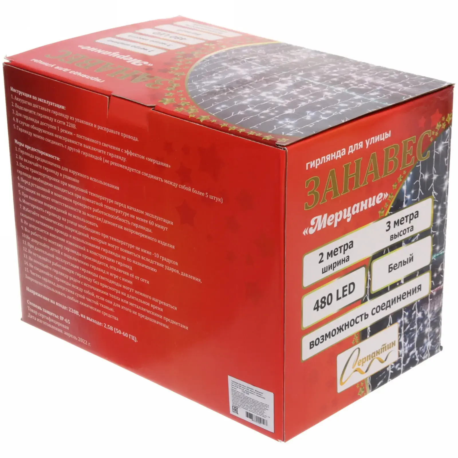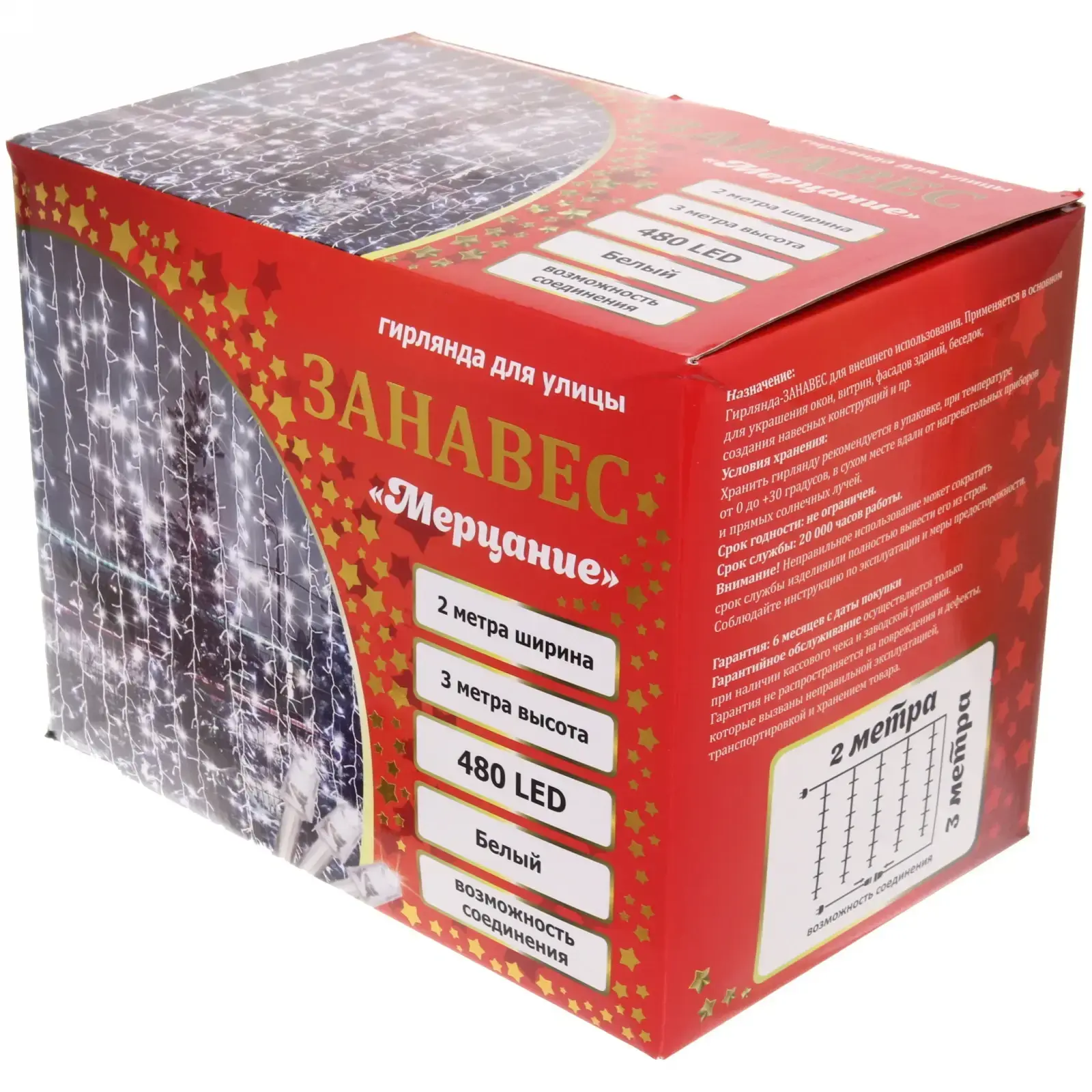 Гирлянда для улицы ЗАНАВЕС «Мерцание» ш2* в3,0 м 480 ламп LED, IP-65, Белый (возм. соединения)