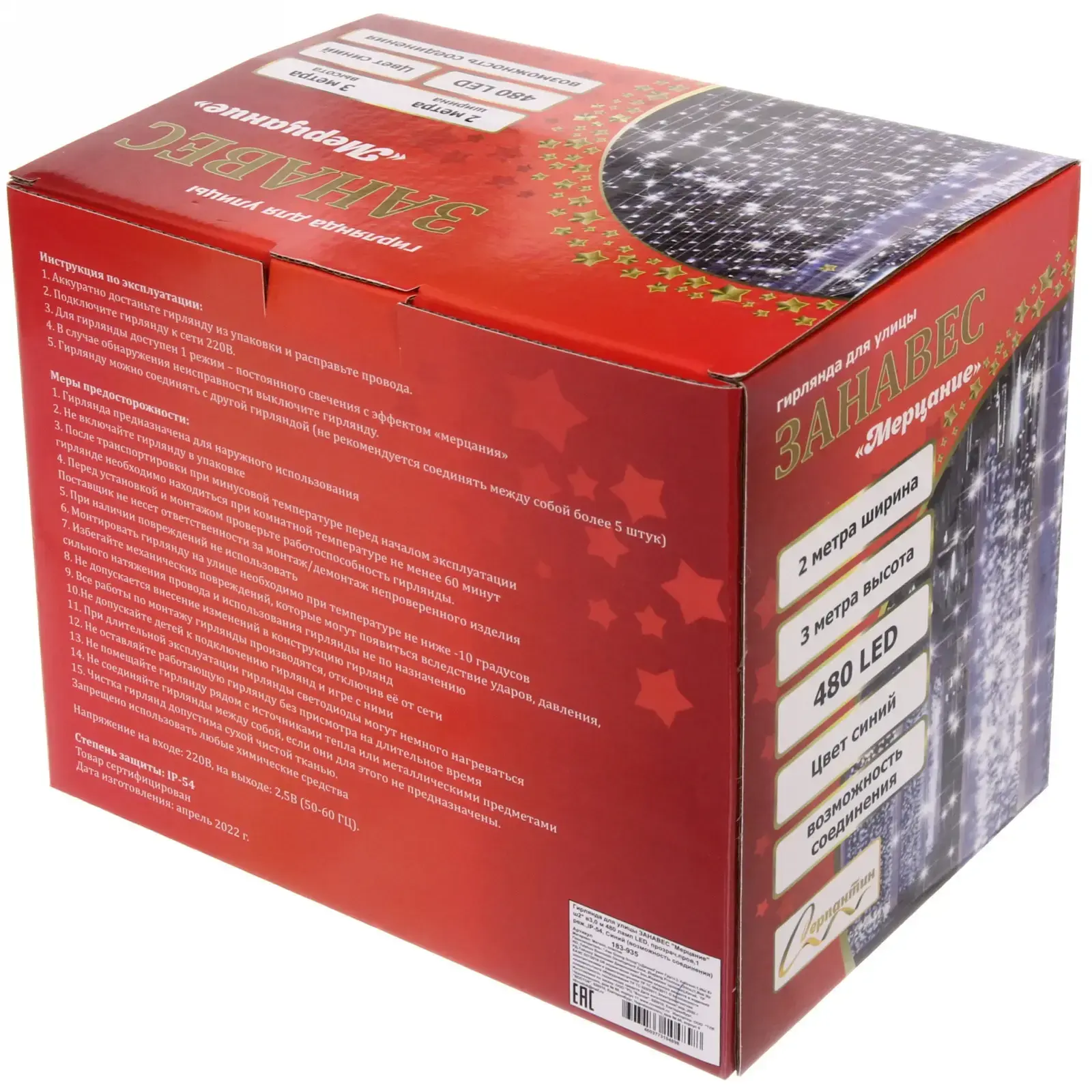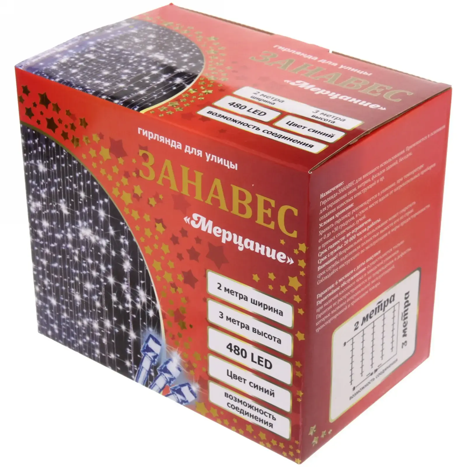 Гирлянда выполнена из прочного морозостойкого пластика и металлических элементов. Четкие размеры 2 м в ширину и 3 м в высоту позволяют точно рассчитать зону декорирования. 480 ярких светодиодов равномерно распределены по всей площади, создавая плотный световой занавес без «пробелов».