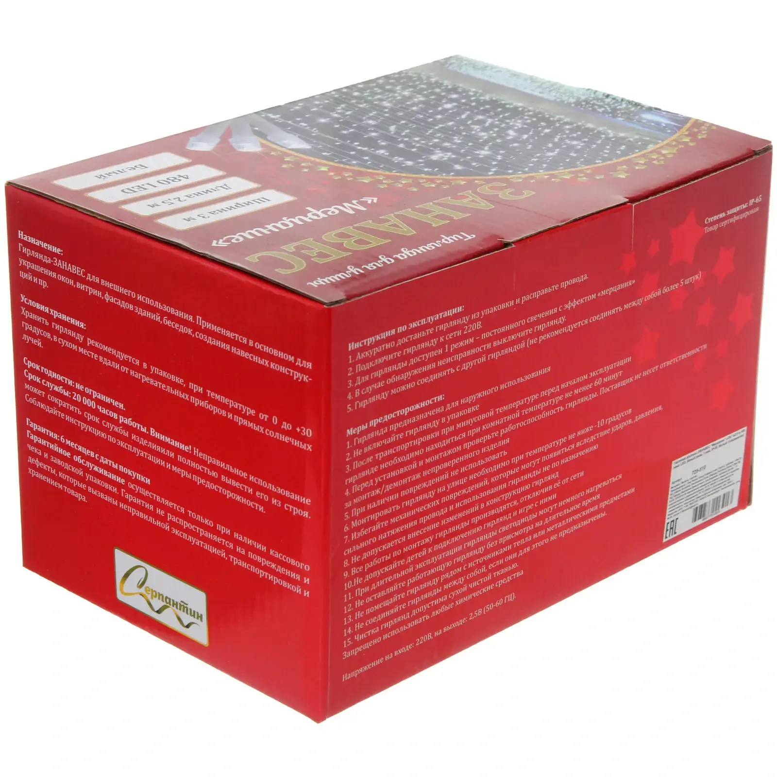 Гирлянда длиной 3 метра и высотой 2,5 метра идеально подходит для использования как внутри помещений, так и на улице. Она оснащена 480 светодиодами, которые равномерно распределены по всей длине, создавая эффект падающего света. Благодаря возможности соединения, вы можете легко увеличить длину гирлянды, что делает её универсальным решением для любых мероприятий — от новогодних праздников до свадеб и вечеринок.