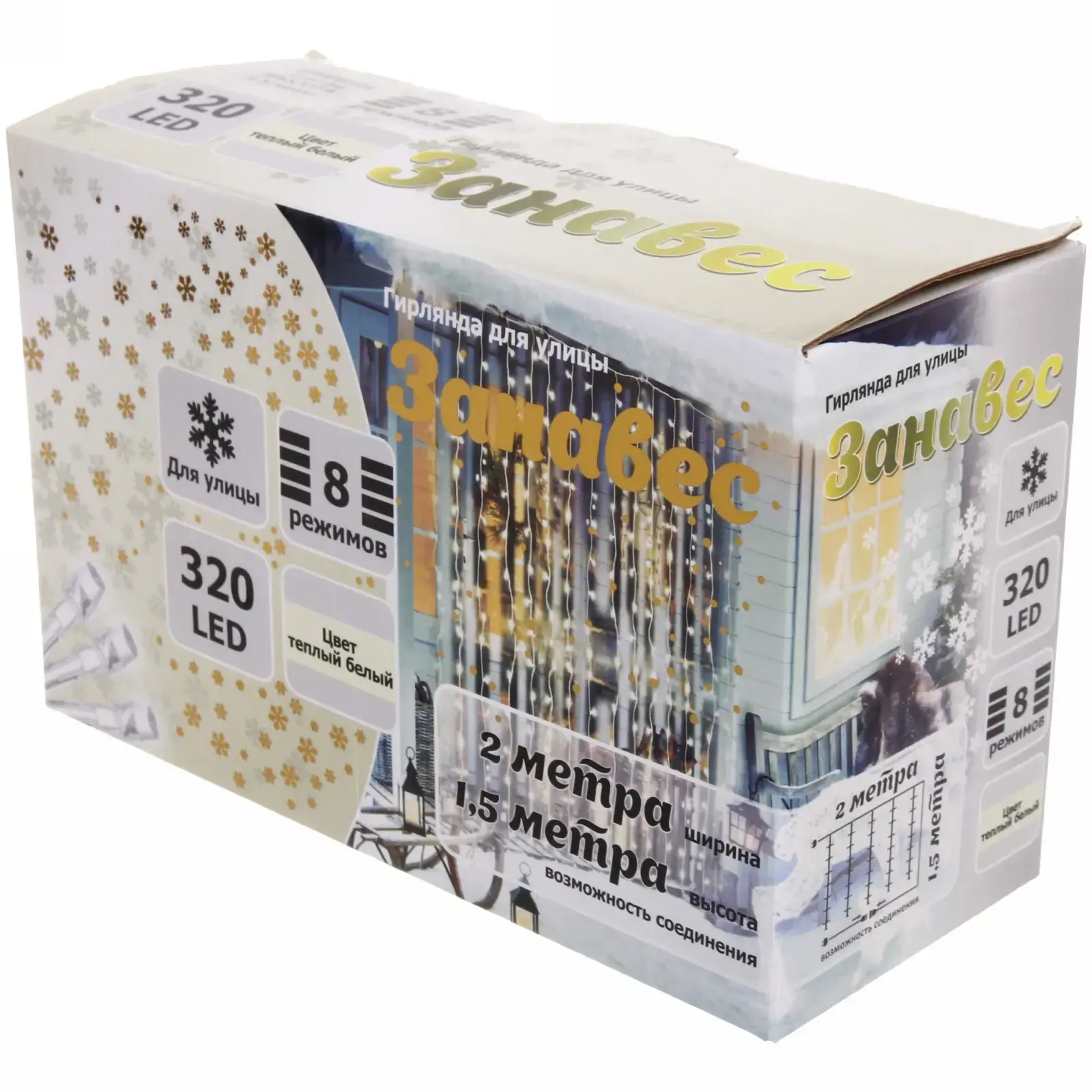 Создайте атмосферу уюта и волшебства с гирляндой 'ЗАНАВЕС'. Эта гирлянда длиной 2 метра и высотой 1,5 метра с 320 светодиодами теплого белого цвета станет отличным дополнением к вашему новогоднему декору. Благодаря 8 режимам работы вы сможете легко менять освещение в зависимости от настроения и события.