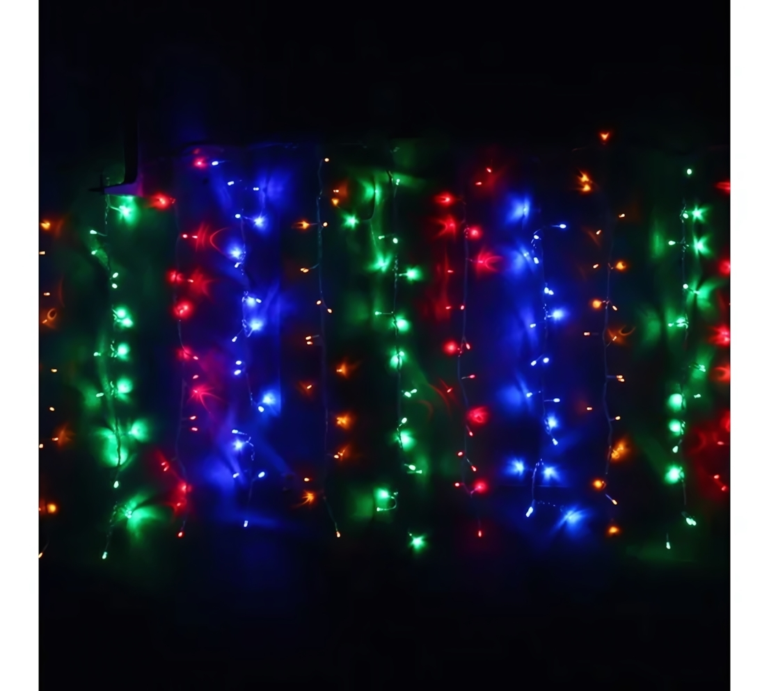 Конструкция выполнена в виде вертикально свисающих нитей, что создает эффект светового водопада. Устанавливать можно на карнизах, стенах или верандах. Гирлянда отгружается в мультицветном исполнении, комбинация светодиодов фиксирована. Это решение поможет украсить пространство к празднику, сделать вечер уютнее и подарить незабываемые впечатления для всей семьи.