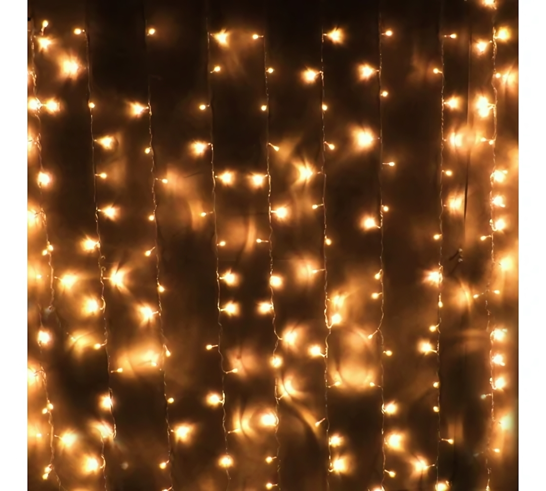 Создайте атмосферу уюта и волшебства с гирляндой-занавесом длиной 2 метра и высотой 1.5 метра. Мягкое теплое белое свечение 320 LED-ламп подчеркнет красоту любого пространства, будь то фасад дома, веранда, витрина магазина или праздничная фотозона. Благодаря плотному световому рисунку она выглядит роскошно и заметно даже на расстоянии.