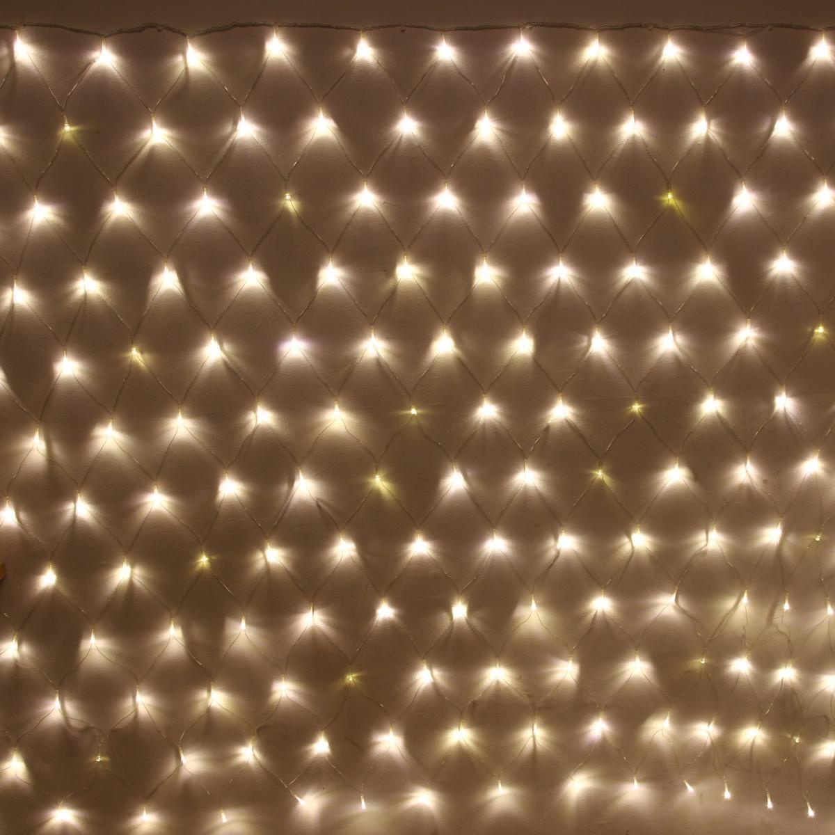 Размер сетки – 2 м в ширину и 1,5 м в высоту, что позволяет покрыть большую площадь без потери яркости. Цвет свечения – теплый белый (около 3000 K), идеально сочетается с любой рождественской палитрой. Питание осуществляется от стандартной сети 220 В через прилагаемый блок управления.