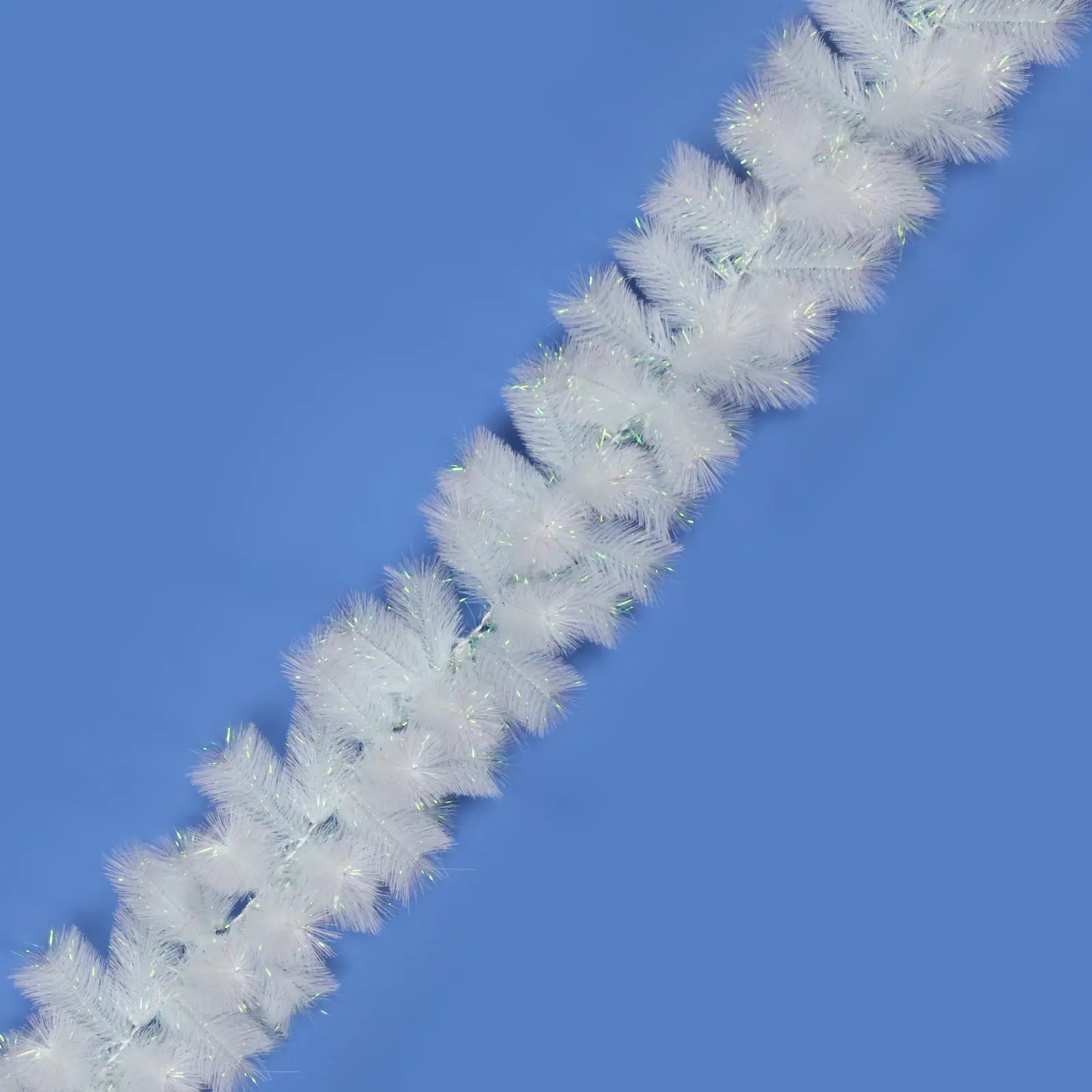 Создайте атмосферу зимней сказки с объёмной гирляндой из 100 густых веток. Белоснежные переливы с блёстками добавят праздничного сияния в интерьер, оформление витрин или сцену для мероприятий.