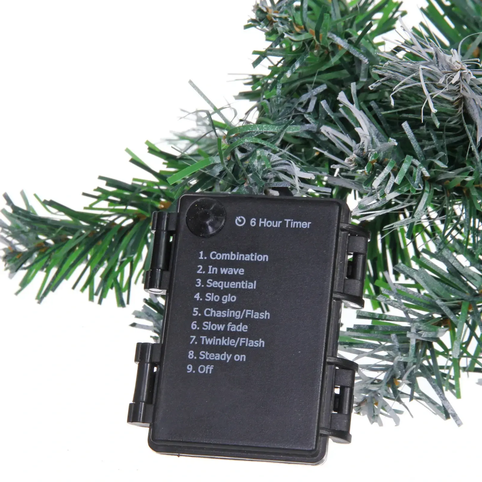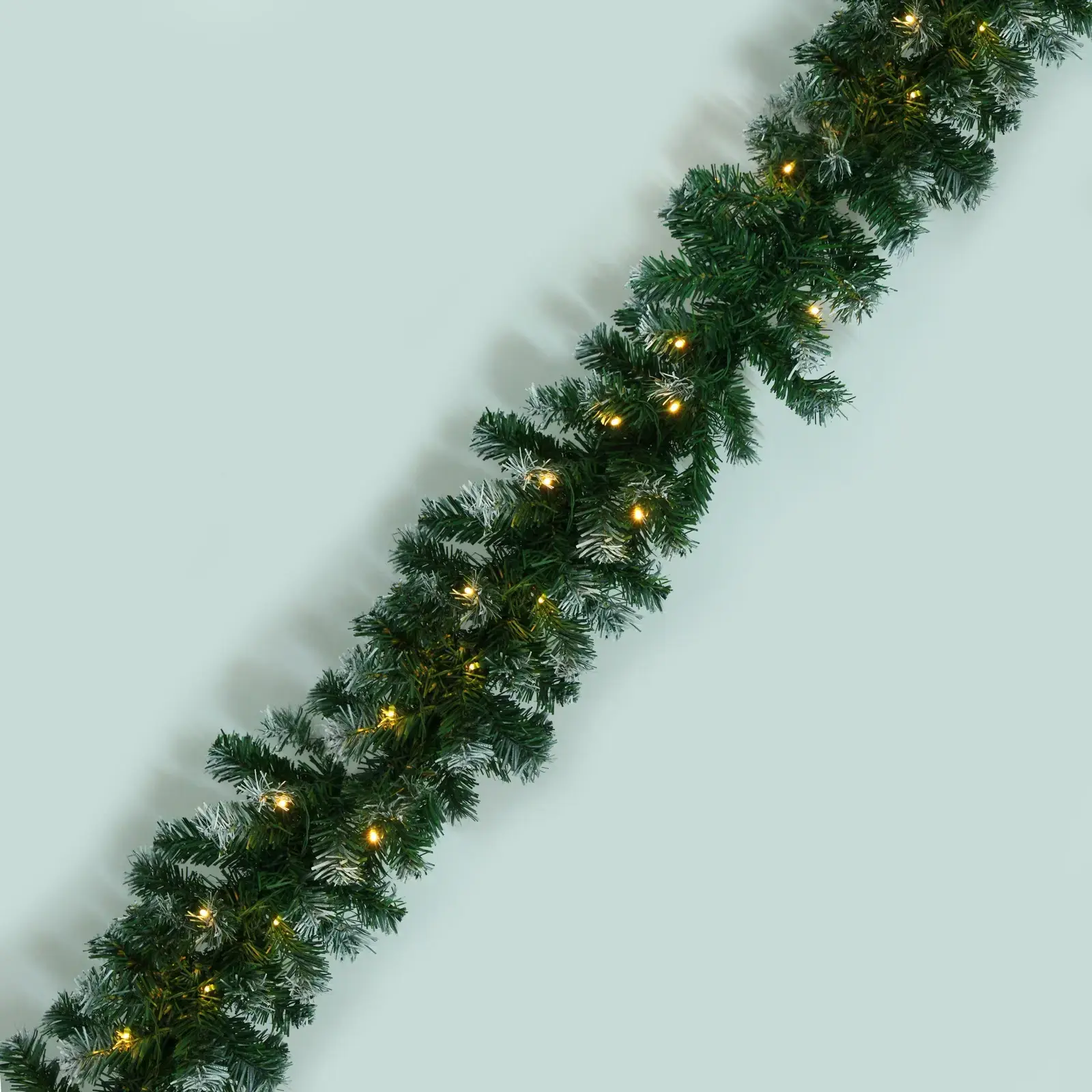 Гирлянда выполнена из прочного ПВХ, что гарантирует ее долговечность. Длина гирлянды составляет 2,7 метра, а диаметр — 25 см, что позволяет легко разместить ее в любом месте. Белое напыление и теплый белый свет создают эффект настоящего снега, добавляя волшебства в ваш дом.
