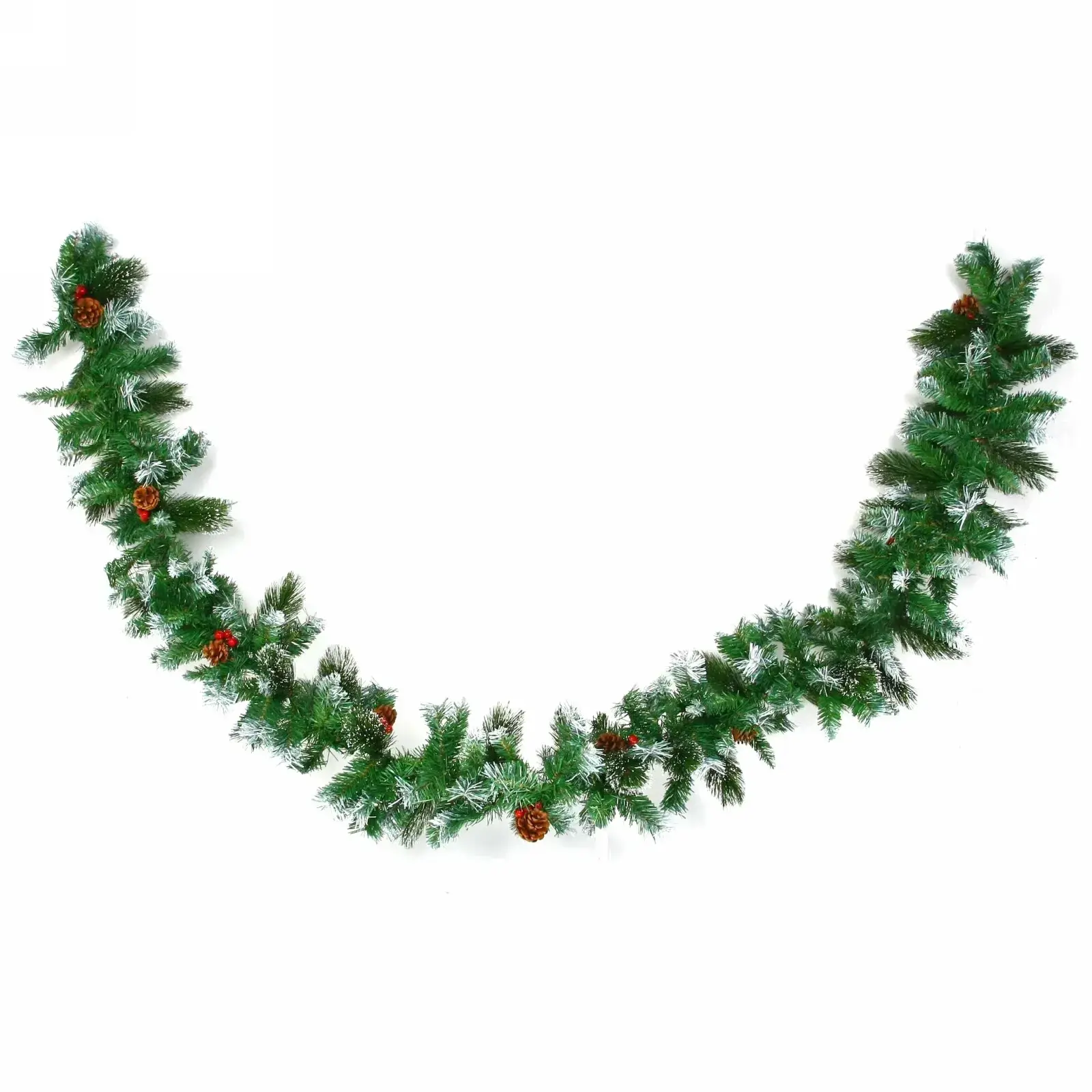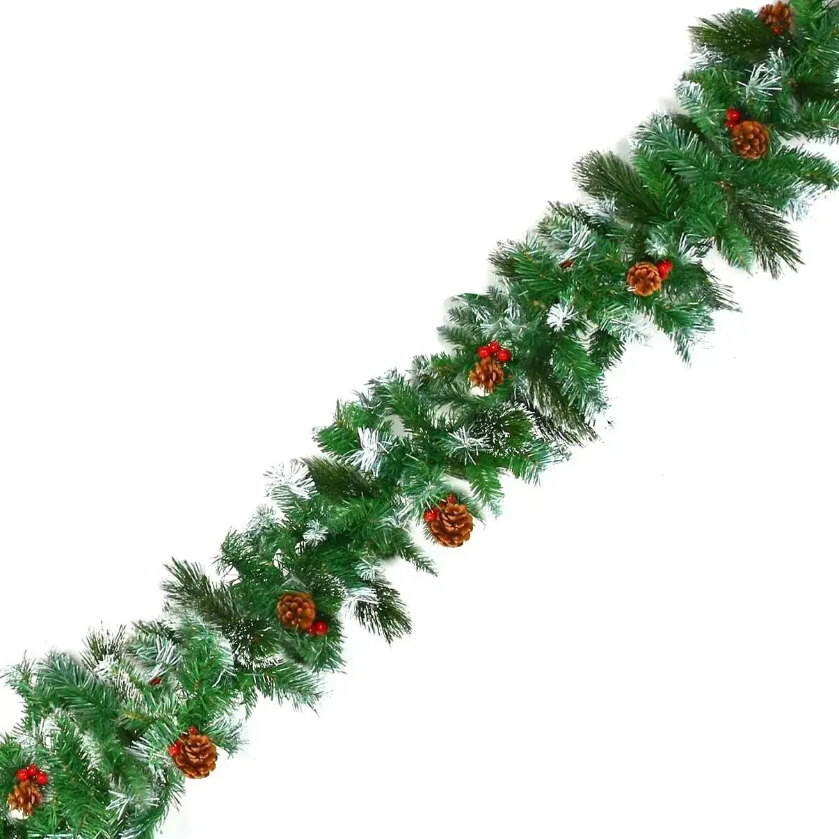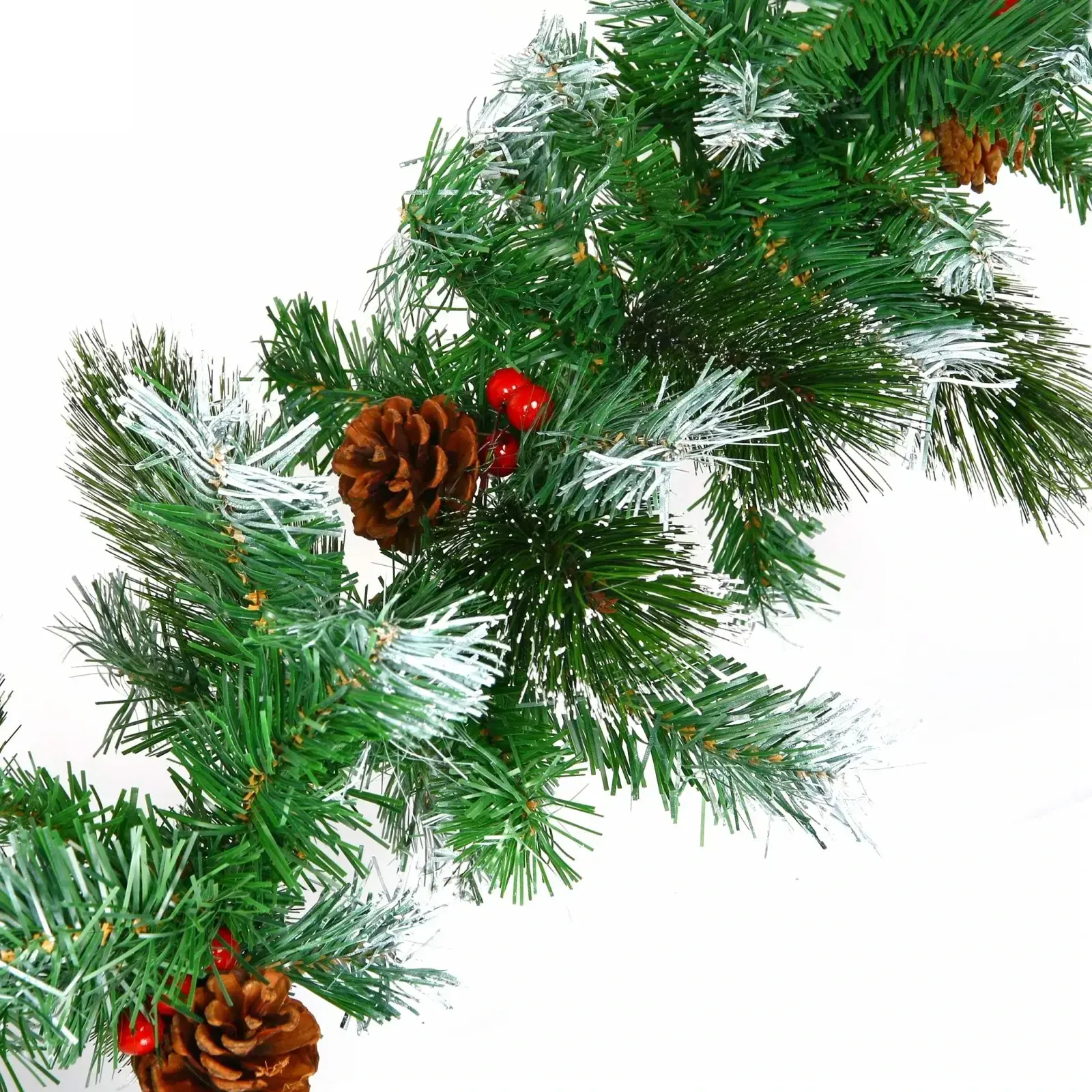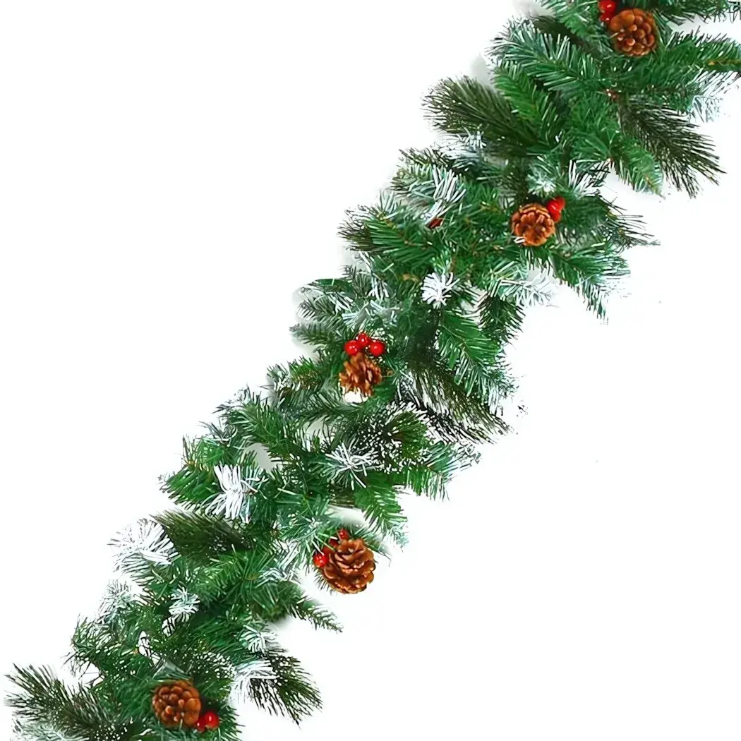 Погрузитесь в атмосферу зимних праздников с изящной искусственной гирляндой длиной 2,7 метра. Пушистые зелёные ветки с лёгким белым налётом, имитирующим иней, декорированы натурально выглядящими коричневыми шишками и яркими красными ягодами. Такая композиция моментально создаёт уют и новогоднее настроение в любом интерьере.