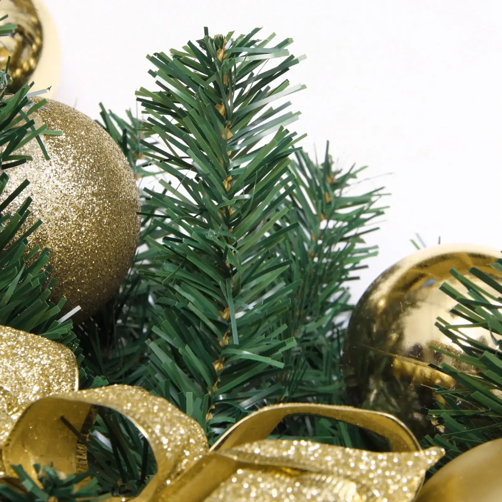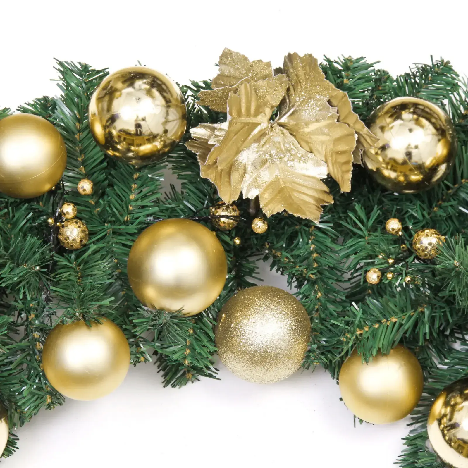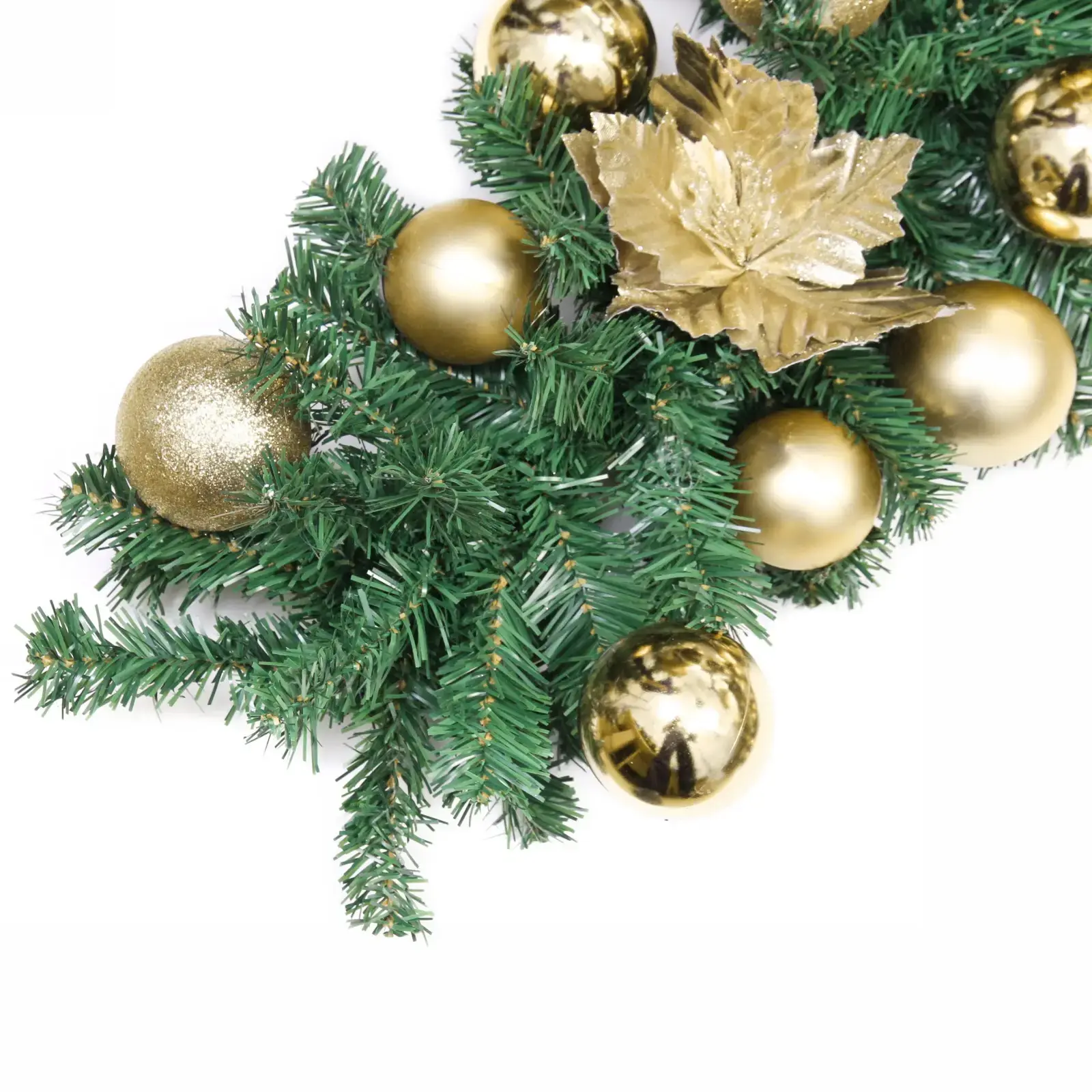 Создайте атмосферу волшебства и уюта с гирляндой хвойной «Сказочное чудо». Эта гирлянда длиной 1,8 метра и диаметром 30 см станет ярким акцентом в вашем новогоднем декоре. Золотые шары и декоративные элементы придают ей изысканный вид, а зеленая основа из ПВХ создает эффект натуральной хвои. Используйте гирлянду для украшения елки, окон, дверей или как центральный элемент праздничного стола.