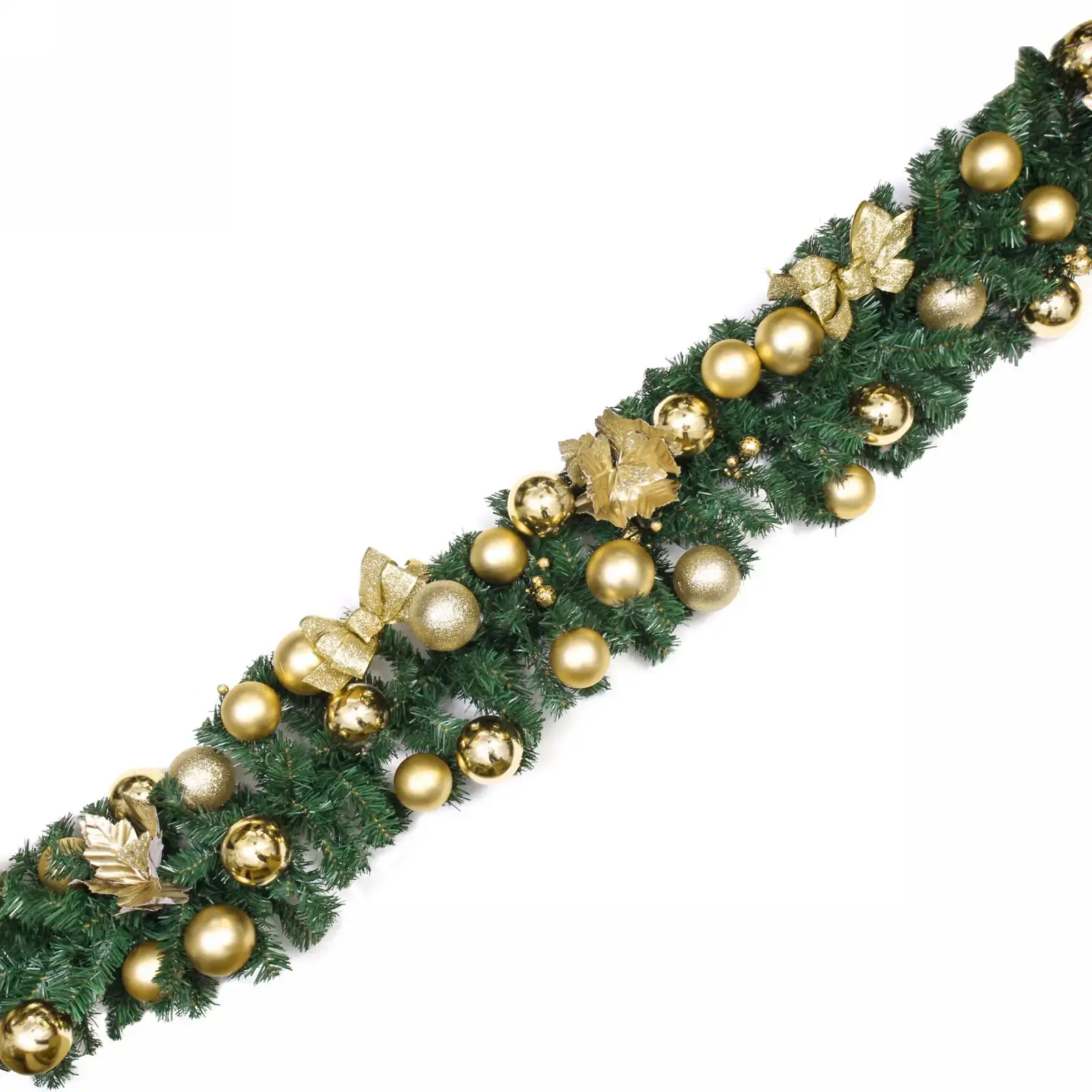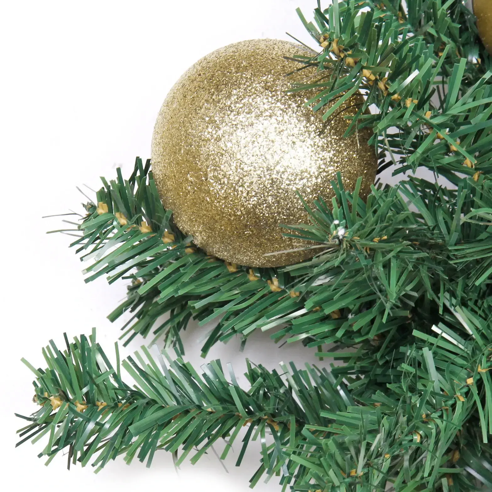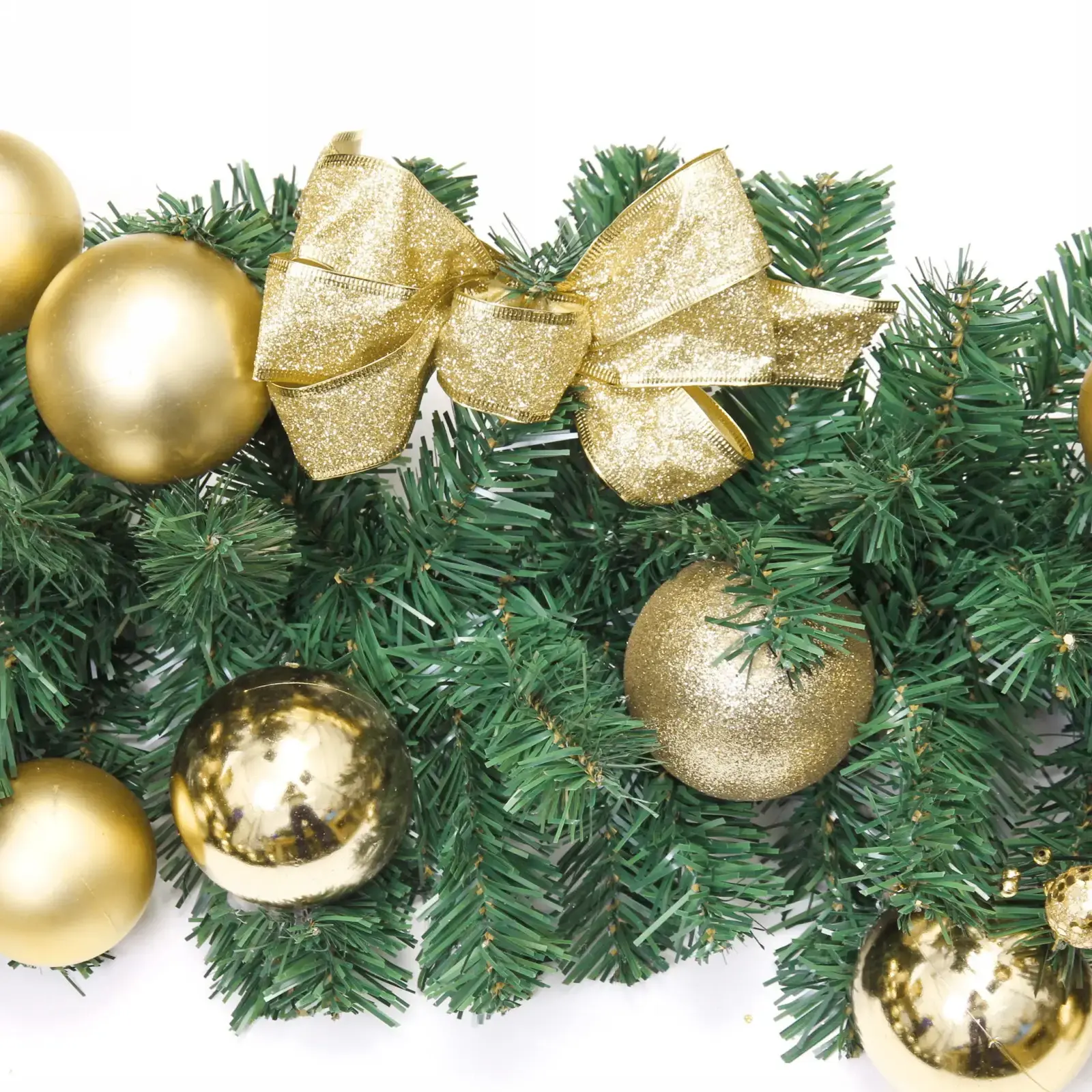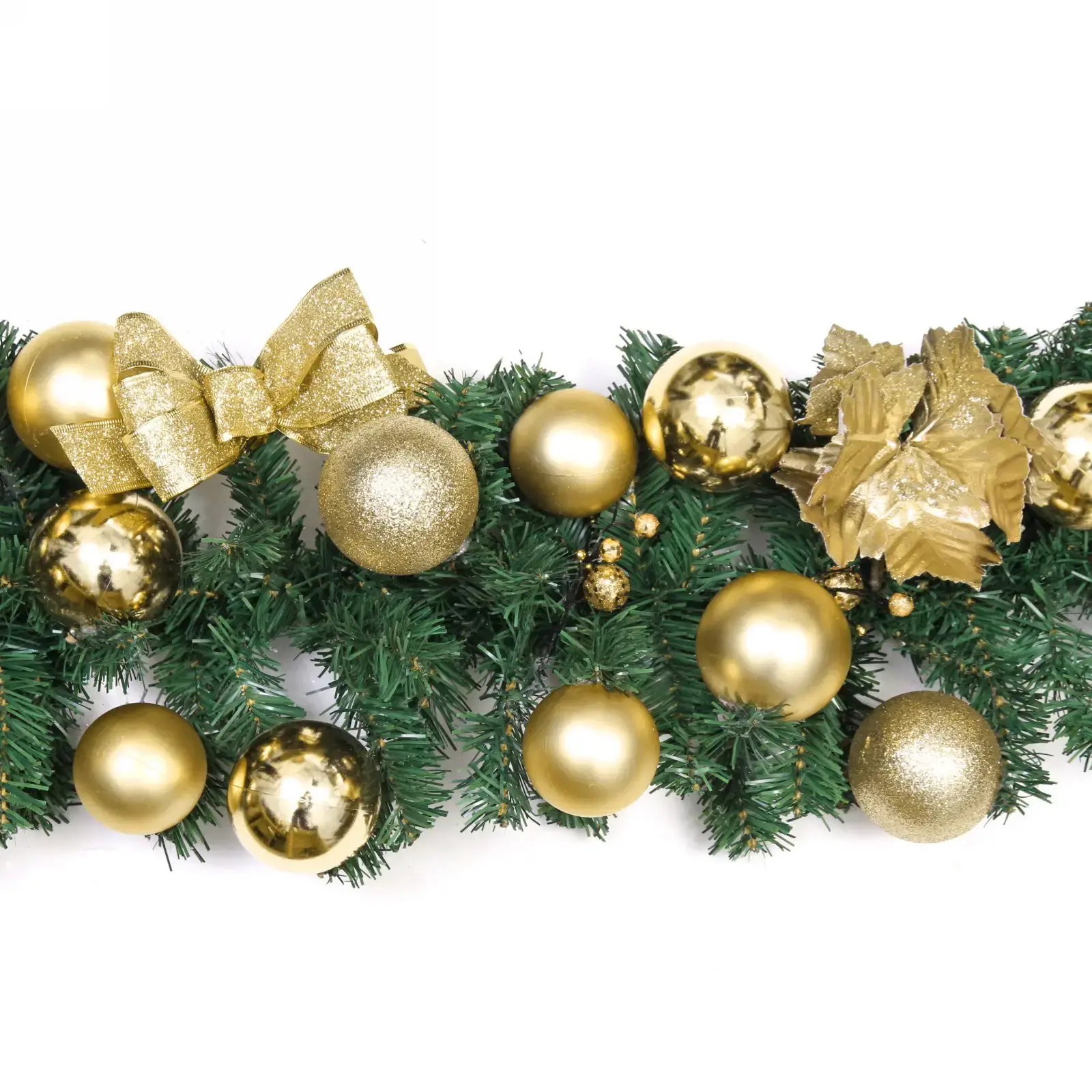 Создайте атмосферу волшебства и уюта с гирляндой хвойной «Сказочное чудо». Эта гирлянда длиной 1,8 метра и диаметром 30 см станет ярким акцентом в вашем новогоднем декоре. Золотые шары и декоративные элементы придают ей изысканный вид, а зеленая основа из ПВХ создает эффект натуральной хвои. Используйте гирлянду для украшения елки, окон, дверей или как центральный элемент праздничного стола.