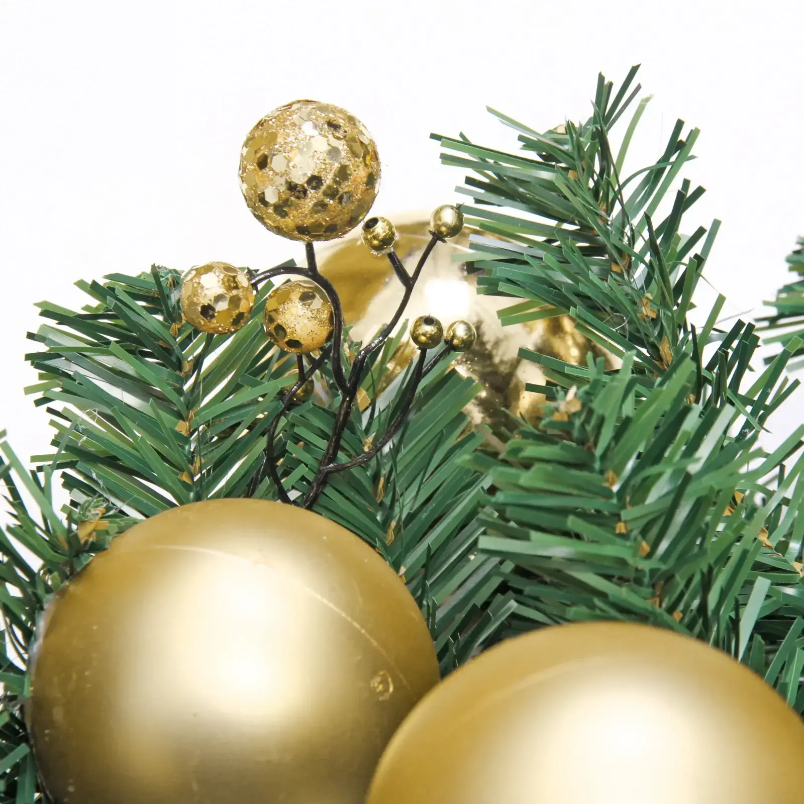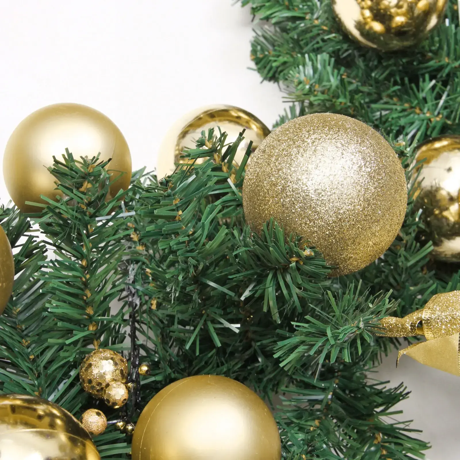 - Эстетика: золотые шары и листья создают эффектный контраст с зеленой основой.