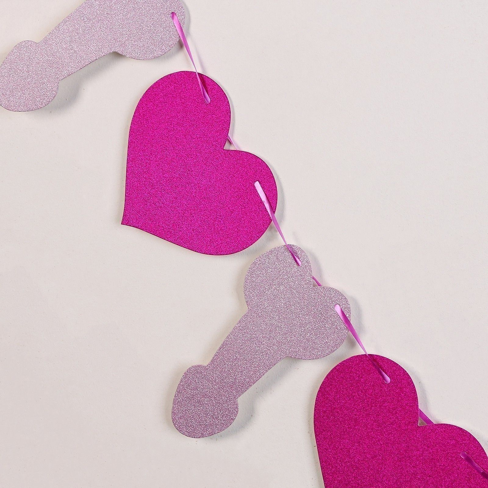 Гирлянда «Любовь» состоит из 14 элементов, чередующихся между симметричными сердечками и фаллическими символами. Она легко крепится на стену или потолок, создавая эффектный декор. Подходит для использования как в помещении, так и на улице, что делает её универсальным решением для любого праздника.