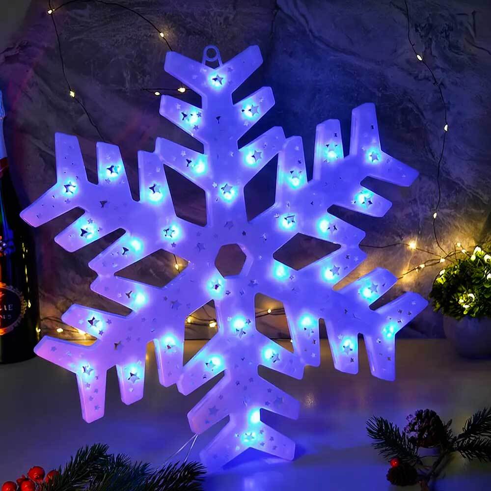 Создайте праздничную атмосферу за считанные минуты с декоративной гирляндой-панно в форме снежинки. Яркий и равномерный синий свет от LED-ламп подчеркнёт зимнюю тематику и добавит уют в интерьер. Благодаря аккуратной форме и фигурным прорезям в виде звёзд, панно выглядит стильно и изящно даже в выключенном состоянии.