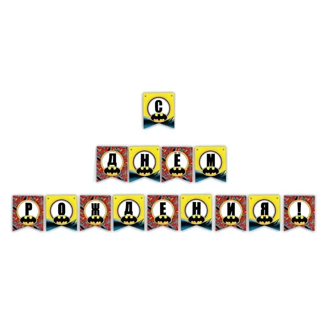 Гирлянда «С Днем рождения» Batman, 14 флажков 12х14см, бумага, комплект с лентой