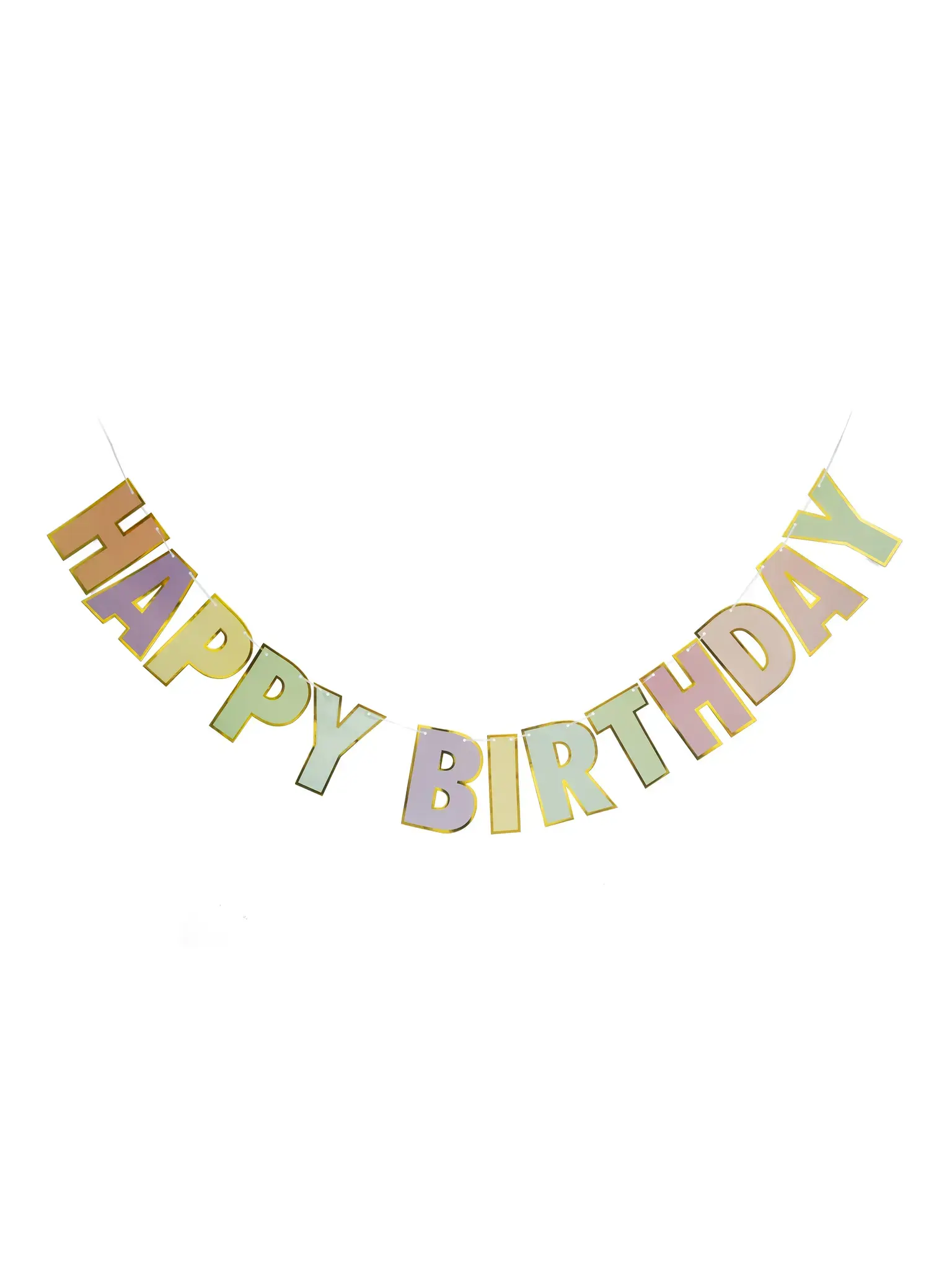 Праздничная гирлянда 'HAPPY BIRTHDAY' — это идеальный элемент декора для вашего дня рождения. Она не только украсит ваше мероприятие, но и создаст атмосферу радости и веселья. Яркие пастельные цвета букв, такие как желтый, зеленый, розовый и персиковый, добавят яркости и настроения в любое торжество.