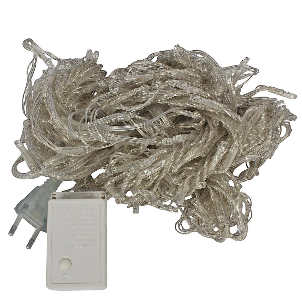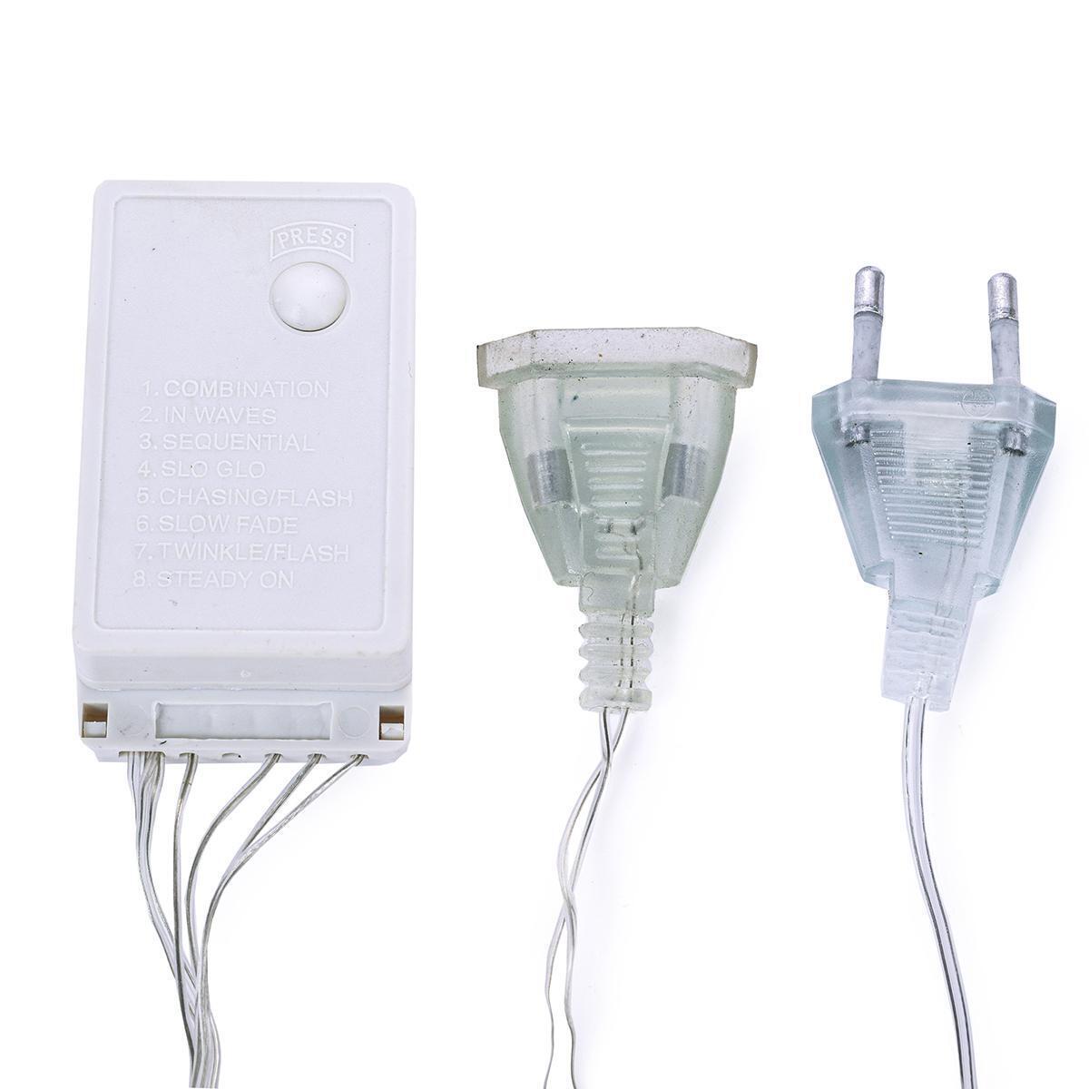 Гирлянда имеет размеры 1,5 метра в ширину и 2,5 метра в высоту, что позволяет легко разместить её в любом уголке вашего дома. Вы сможете легко подключить гирлянду к электросети, а прозрачный провод практически незаметен на фоне декора. Гирлянда оснащена контроллером с 8 режимами работы, включая прямое свечение и мерцание, так что вы сможете настроить её в соответствии с настроением или событием.