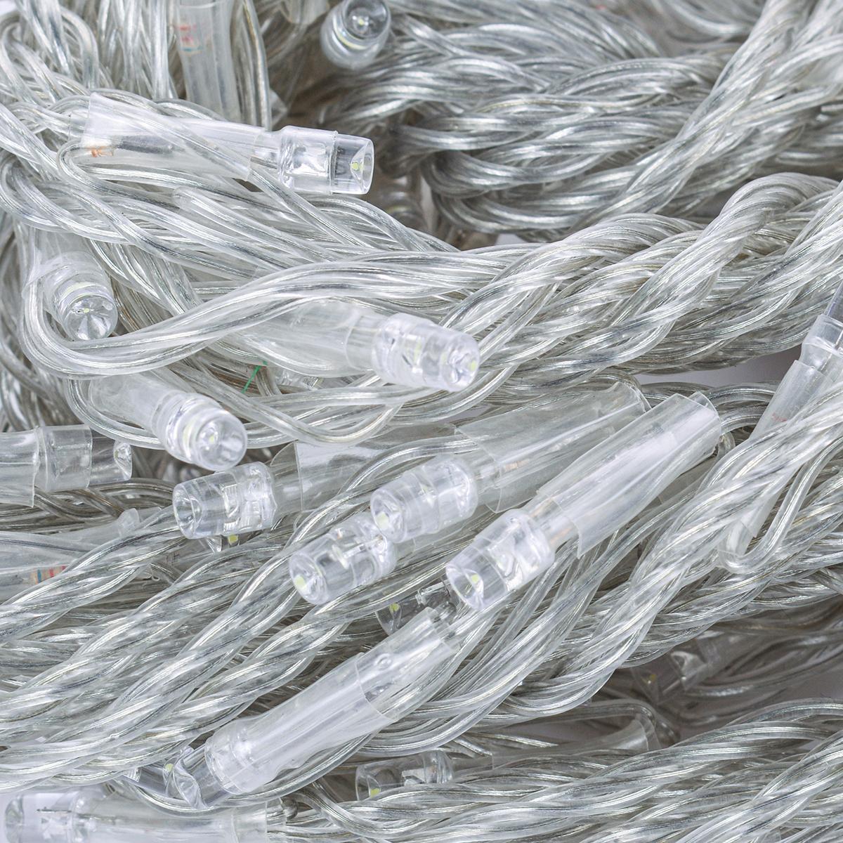 Использование светодиодов обеспечивает долговечность и экономию энергии, что делает гирлянду не только красивой, но и практичной. Белый свет ламп создаёт уютную и комфортную атмосферу, а возможность соединения сразу нескольких гирлянд позволяет вам создать масштабные конструкции для декорирования помещений. Приятным бонусом является IP-20, что означает защиту от воздействия влаги, поэтому гирлянда идеально подходит для использования в помещениях.