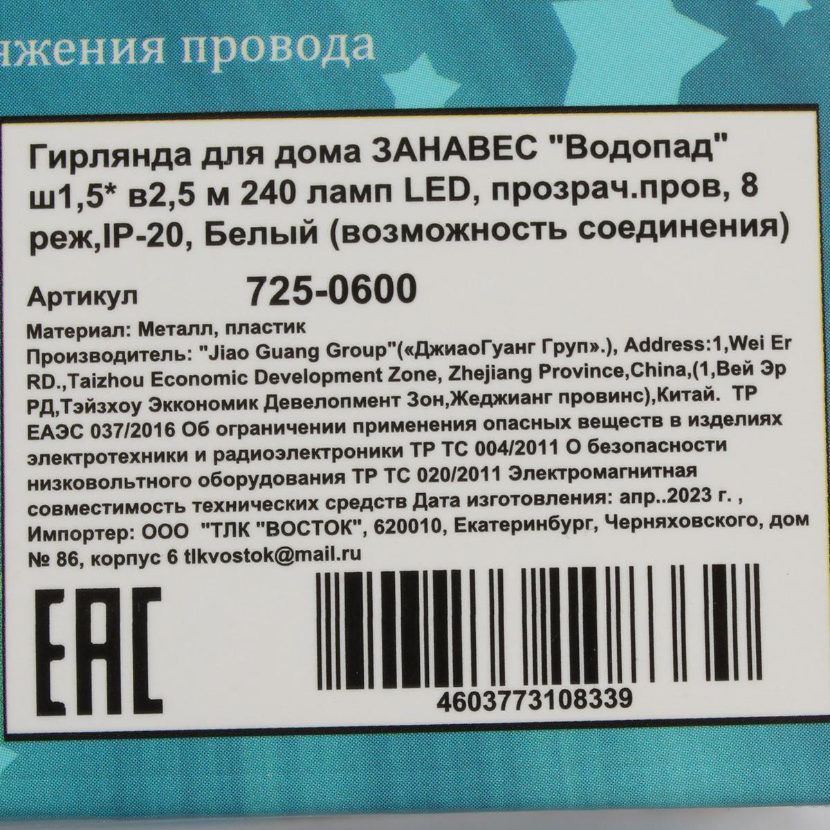 Гирлянда выполнена из высококачественных материалов, обеспечивающих долговечность и надежность в эксплуатации. Убедитесь, что вы получили именно то, что хотели, при выборе гирлянды "Водопад". Закажите сегодня и станьте обладателем этого удивительного декоративного элемента, который добавит света и радости в ваш дом!