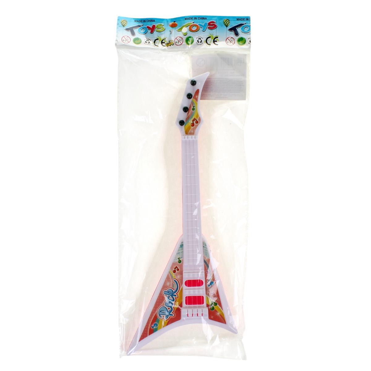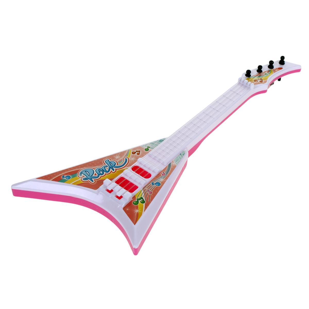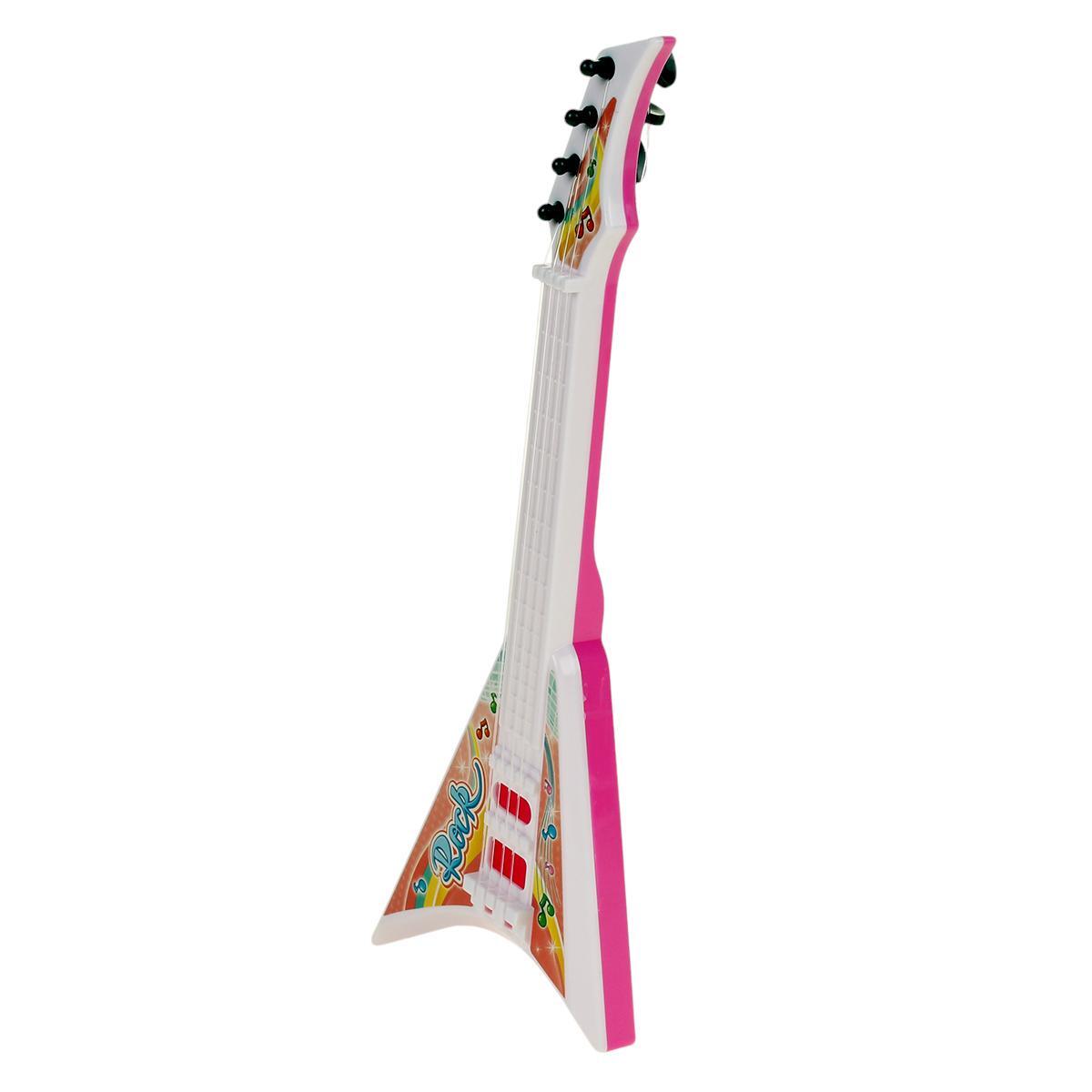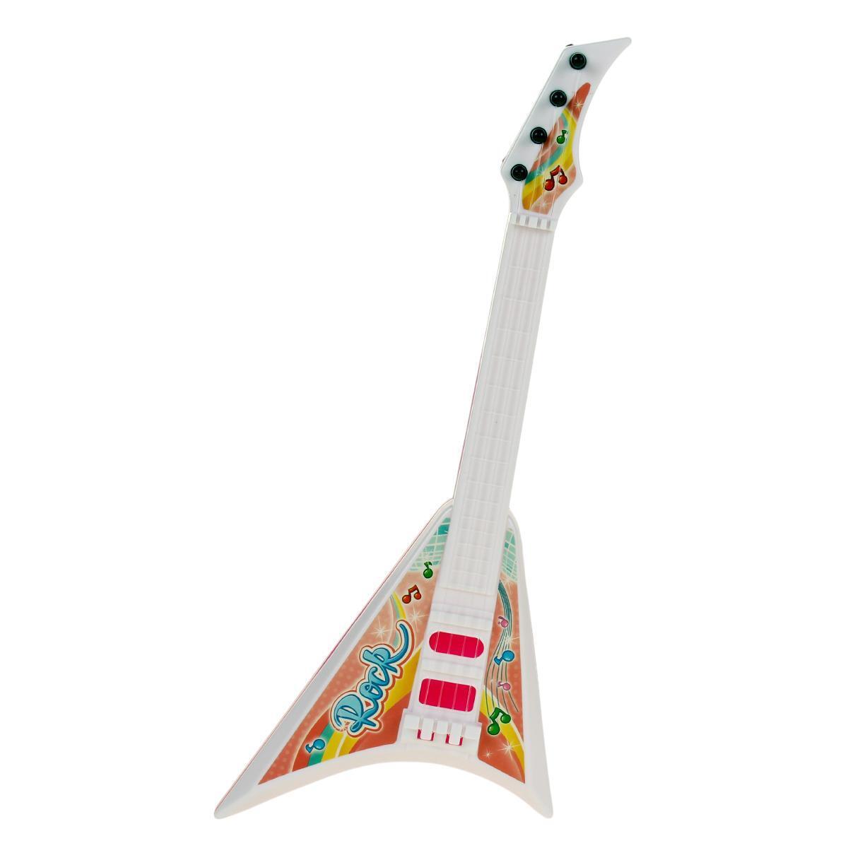 Подарите вашему ребёнку возможность почувствовать себя настоящим музыкантом с этой стильной игрушечной гитарой. Она выполнена в эффектной V-образной форме, привлекающей внимание и вызывающей интерес к игре. Яркие декоративные элементы с изображениями нот, радуги и надписью «Rock» пробуждают фантазию и делают занятие музыкой увлекательным.