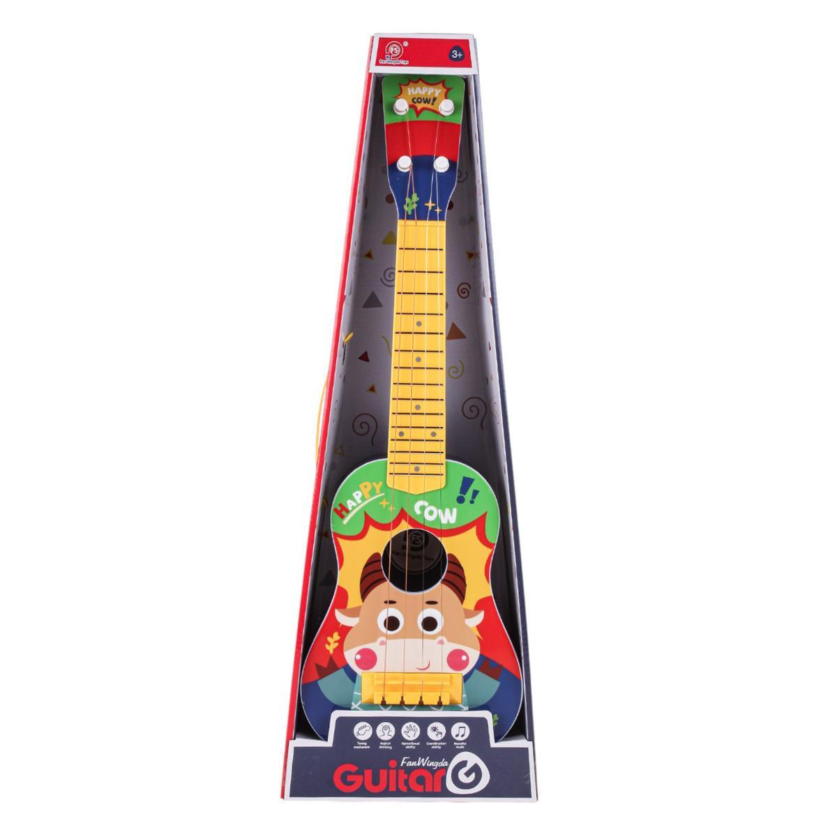 Используйте игрушку как в домашних условиях, так и в игровых группах, чтобы стимулировать музыкальное восприятие и творческое мышление. Гитара выполнена из прочного пластика с ярким мультяшным дизайном, текстурированным грифом и легкими струнами для безопасного использования ребенком. Размер: длина 57 см, ширина корпуса 18 см, материал — экологичный пластик, без острых углов. Такой инструмент станет приятным и полезным подарком для малыша, способствуя его гармоничному развитию и хорошему настроению.