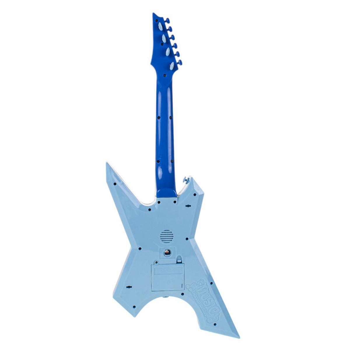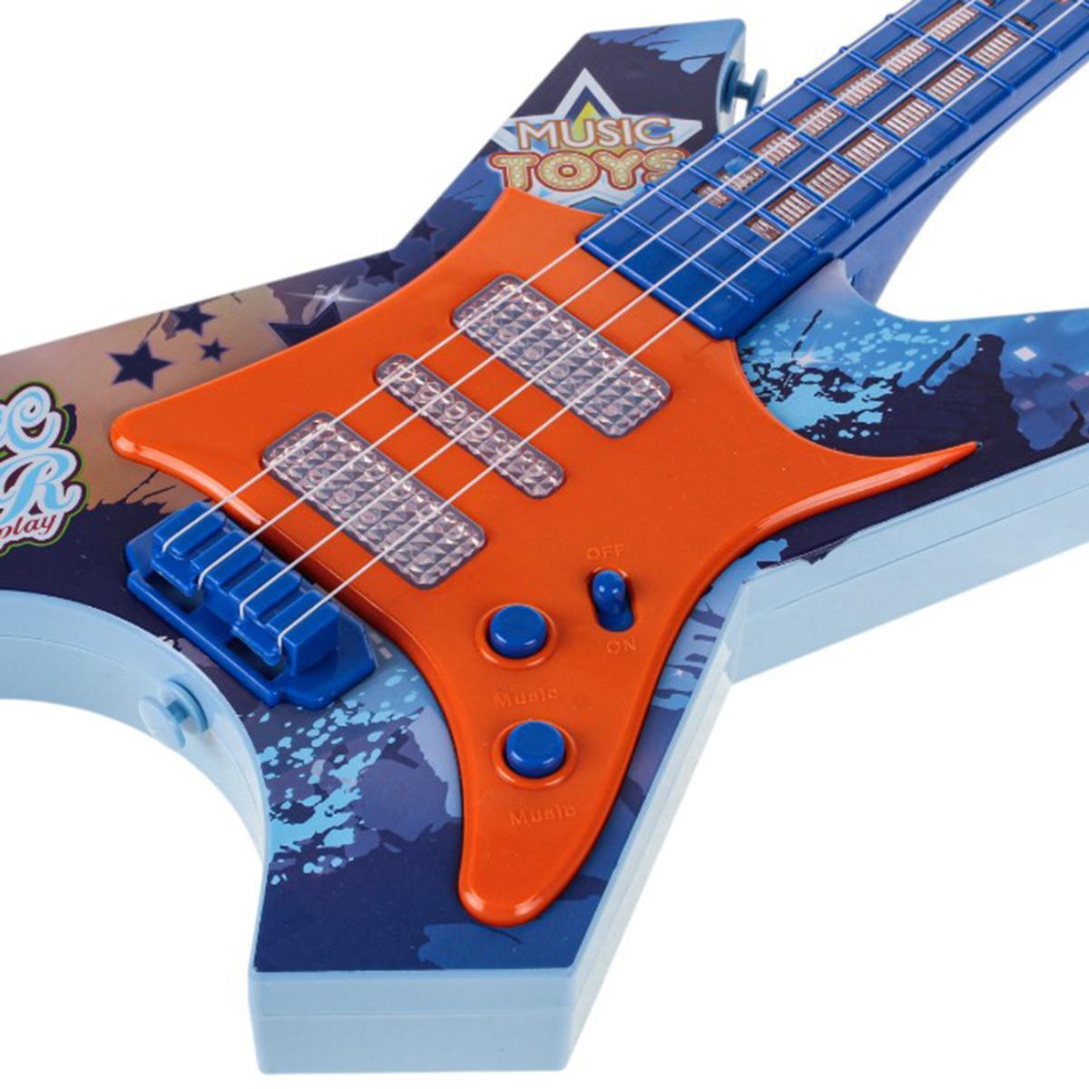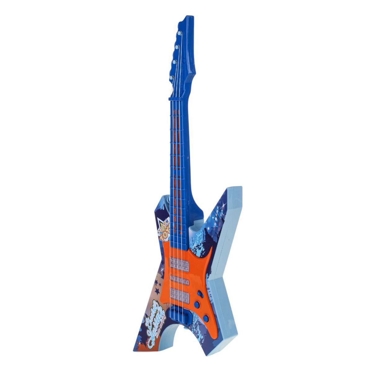 Гитара имеет яркий, привлекающий внимание дизайн и легкий вес — удобно держать и переносить. Изготовлена из прочного, безопасного пластика, что обеспечивает долговечность и надежность в использовании. Размеры гитары — 61,5 см в длину, что идеально подходит для маленьких рук. В комплект входят световые и звуковые эффекты, что стимулирует воображение и творческое развитие.