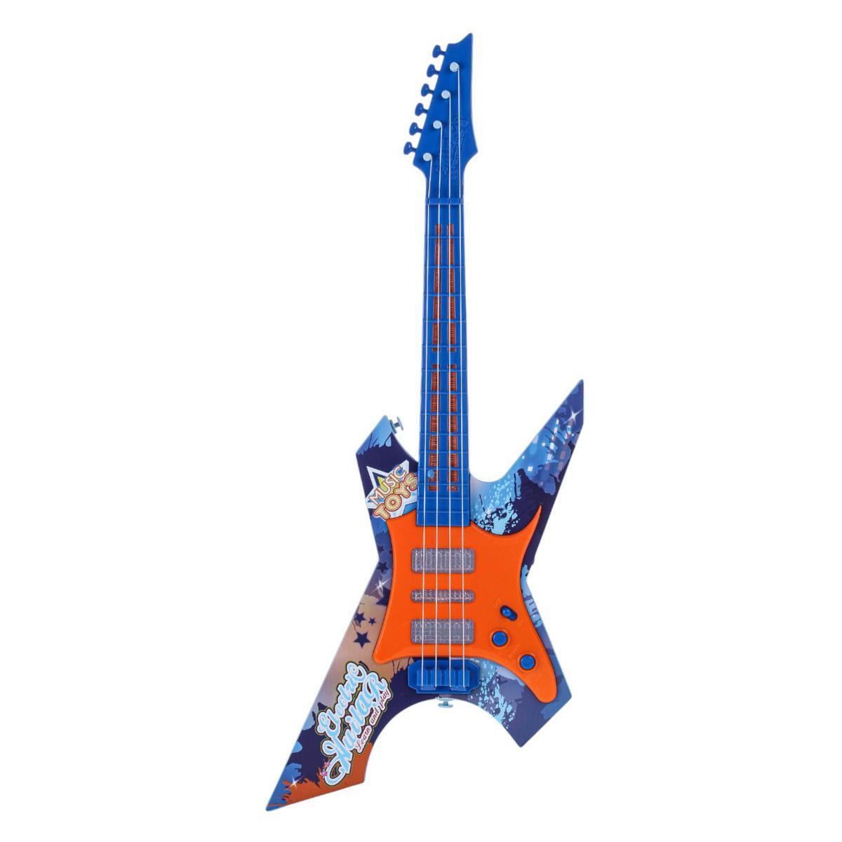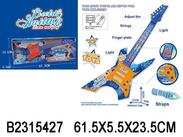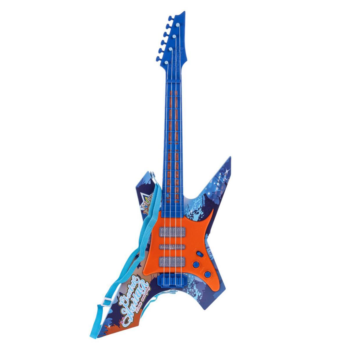 Гитара имеет яркий, привлекающий внимание дизайн и легкий вес — удобно держать и переносить. Изготовлена из прочного, безопасного пластика, что обеспечивает долговечность и надежность в использовании. Размеры гитары — 61,5 см в длину, что идеально подходит для маленьких рук. В комплект входят световые и звуковые эффекты, что стимулирует воображение и творческое развитие.