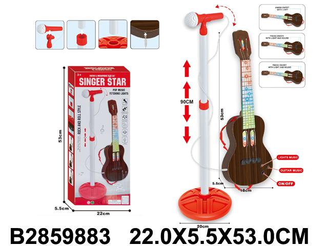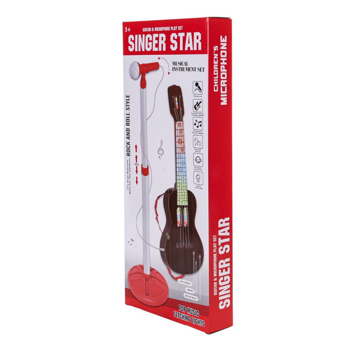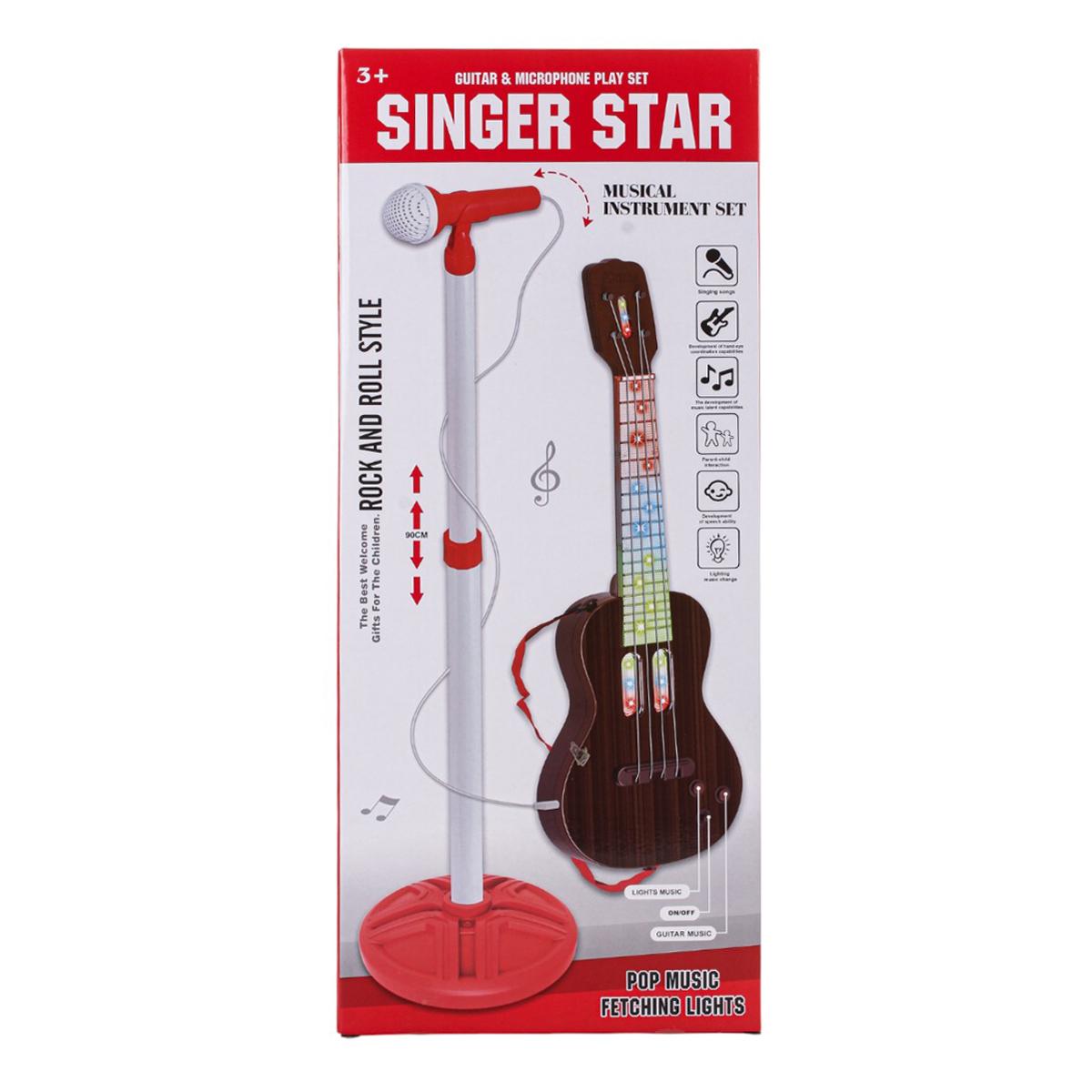Подарите ребёнку возможность стать звездой сцены с нашим набором «singer star» – детская гитара и микрофон на подставке, где свет и музыка объединяются в волшебное шоу! Набор рассчитан на детей от 3 лет и полностью собран. С учётом простого действия – включите кнопку «ON/OFF», гитара мгновенно активируется: светятся разноцветные линзы, заполняется звук, а 4 струны позволяют развивать мелкую моторику и музыкальный слух.