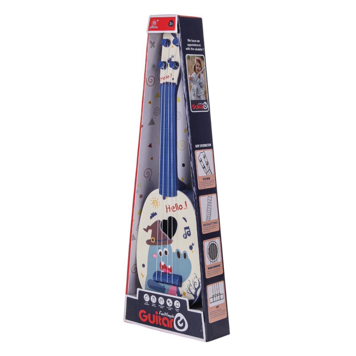Гитара оснащена четырьмя струнами и пластиковым грифом с имитацией ладов. Она прекрасно лежит в руках маленького музыканта, позволяя разучивать простые мелодии или просто весело играть, тренируя моторику и координацию движений.