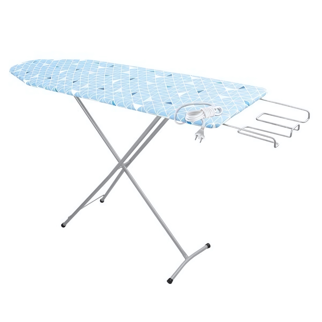 Основа выполнена из МДФ/ДСП толщиной 10 мм, что обеспечивает устойчивость и ровную поверхность для качественного разглаживания ткани. Металлические ножки с полимерно-порошковым покрытием защищены от износа и сохраняют аккуратный внешний вид. Чехол из бязи с поролоновым слоем способствует мягкому скольжению утюга. Расцветка в ассортименте — отгружается один товар, цвет определяется случайным образом.