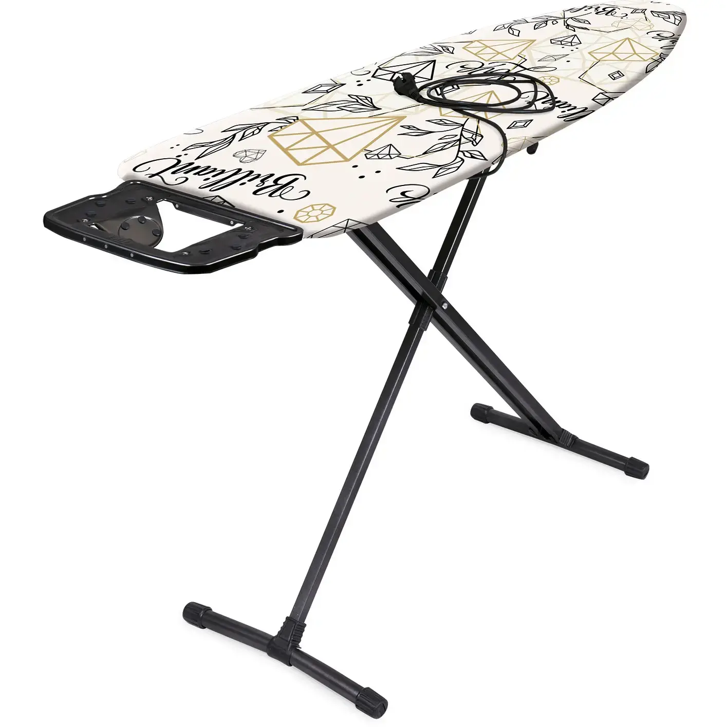Эта гладильная доска подходит для использования как в домашних условиях, так и в профессиональных салонах. Она легко регулируется по высоте до 0,9 м, что позволяет выбрать наиболее удобное положение для работы. Съёмный чехол из хлопка обеспечивает легкость в уходе и долговечность, а подставка под утюг с термоустойчивыми вставками гарантирует безопасность во время глажки.