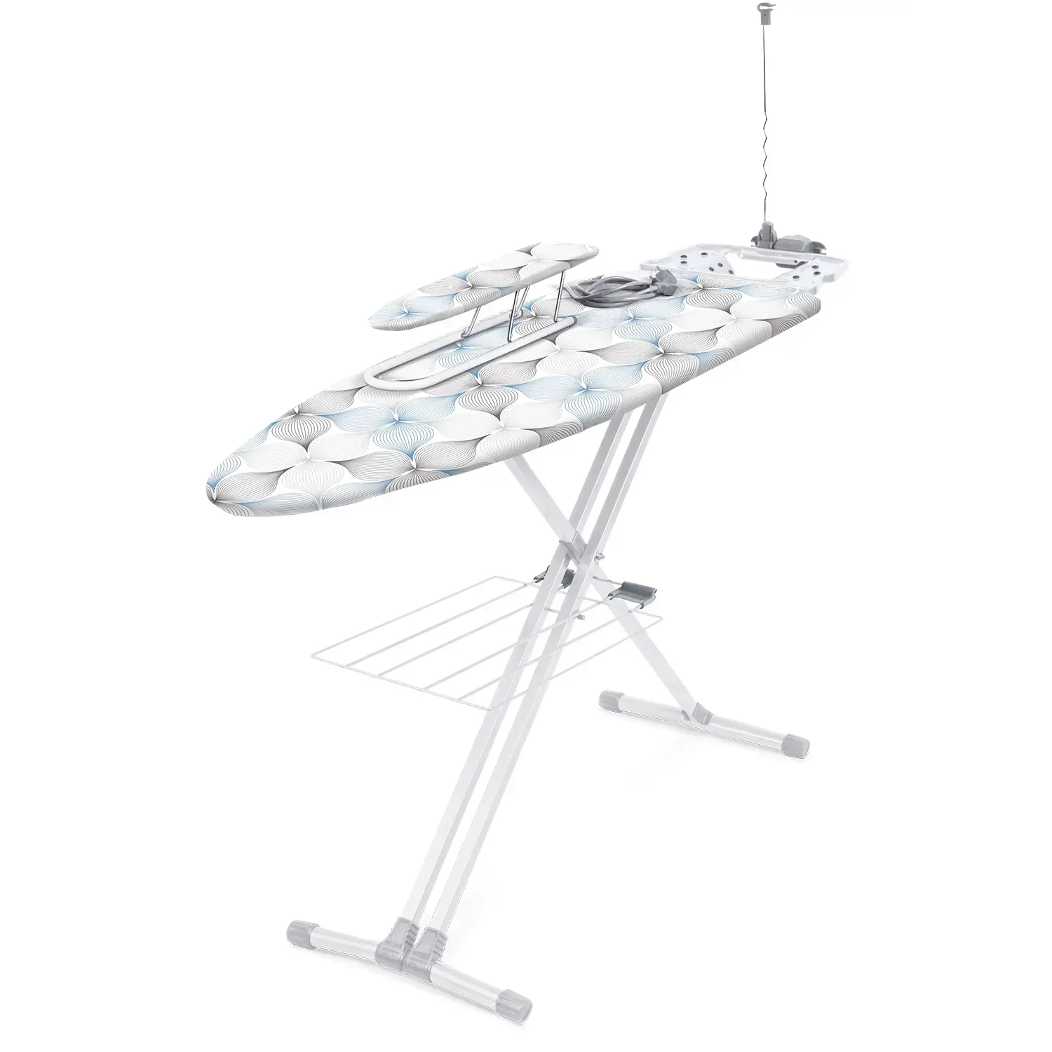 Складная конструкция позволяет компактно хранить доску даже в маленьких помещениях. Оптимальный размер рабочей поверхности обеспечивает комфортную глажку любых вещей, от рубашек до постельного белья.