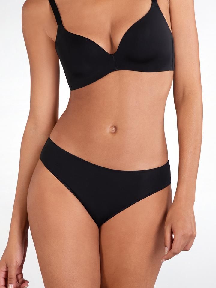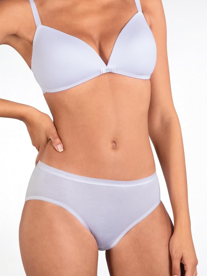 Модель со средней посадкой подходит для большинства типов фигуры и гармонично сочетается с повседневной одеждой. Классический крой с полным покрытием сзади делает трусики удобными для работы, прогулок и активного дня. Эластичная обработка по верхнему краю и вырезам для ног помогает белью аккуратно фиксироваться без излишнего давления.