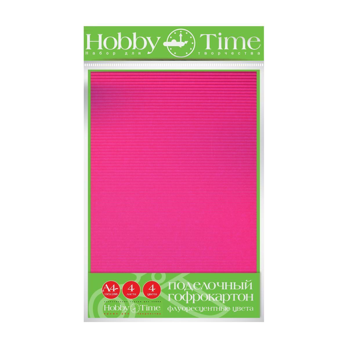 Гофрокартон "Флуоресцентные Цвета" А4, 4 листа, 4 оттенка, для творчества и поделок