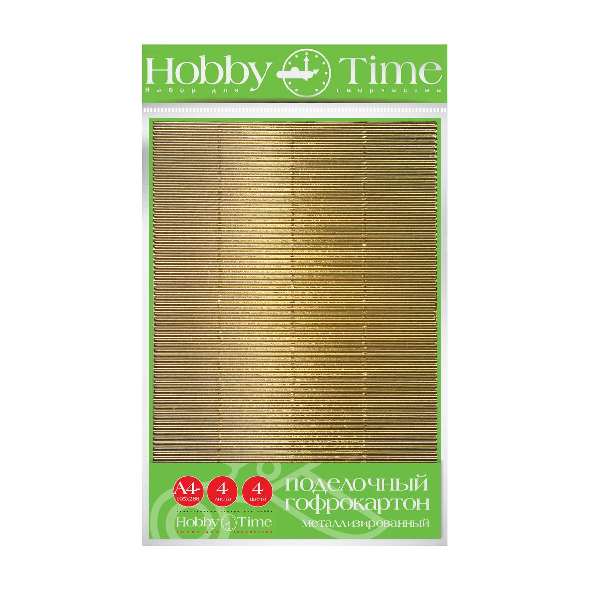 Гофрокартон металлизированный «Bruno Visconti» А4, 4 листа, 4 цвета, для творчества и поделок