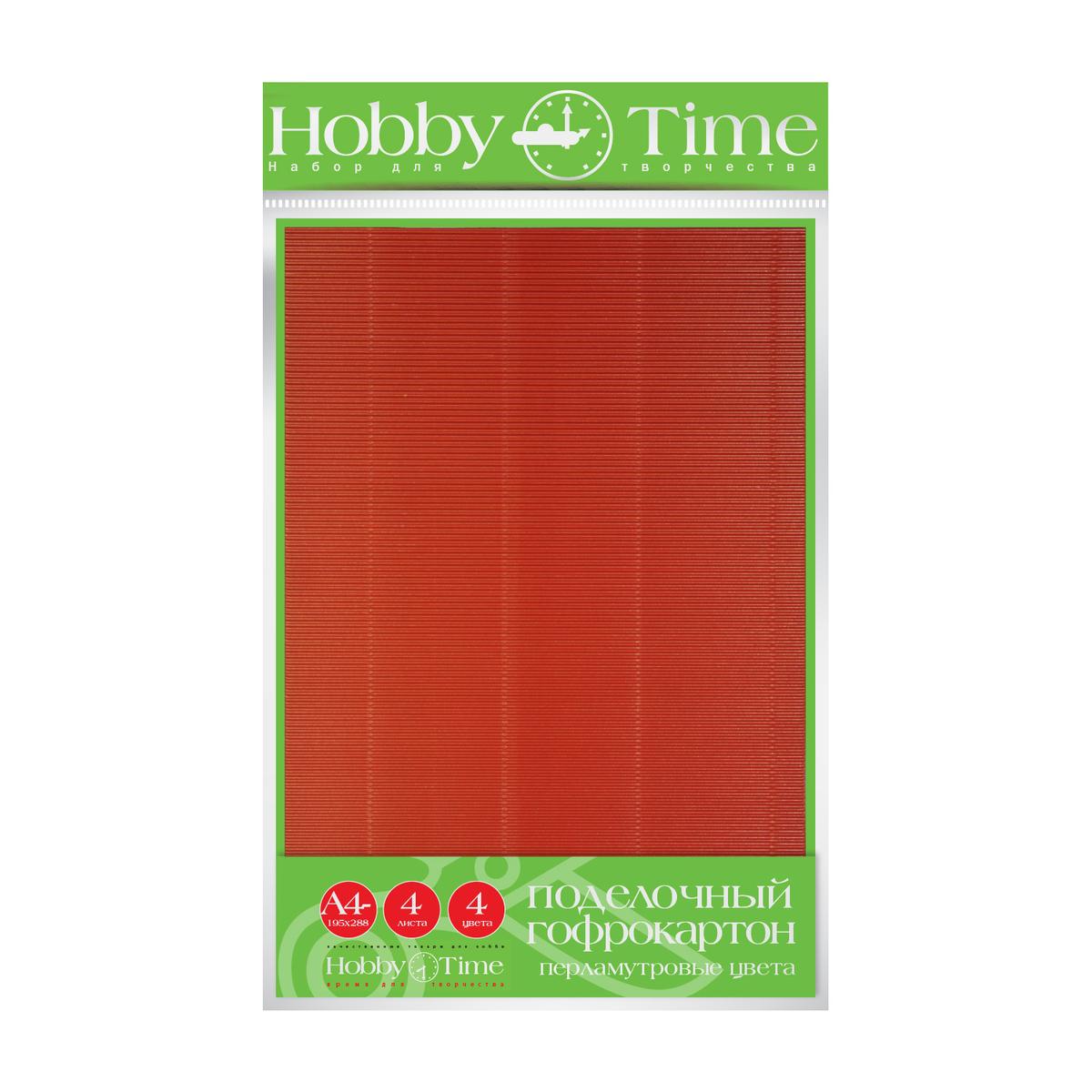 Гофрокартон А4 "Перламутровые Цвета", 4 листа, 4 цвета, для поделок и творчества