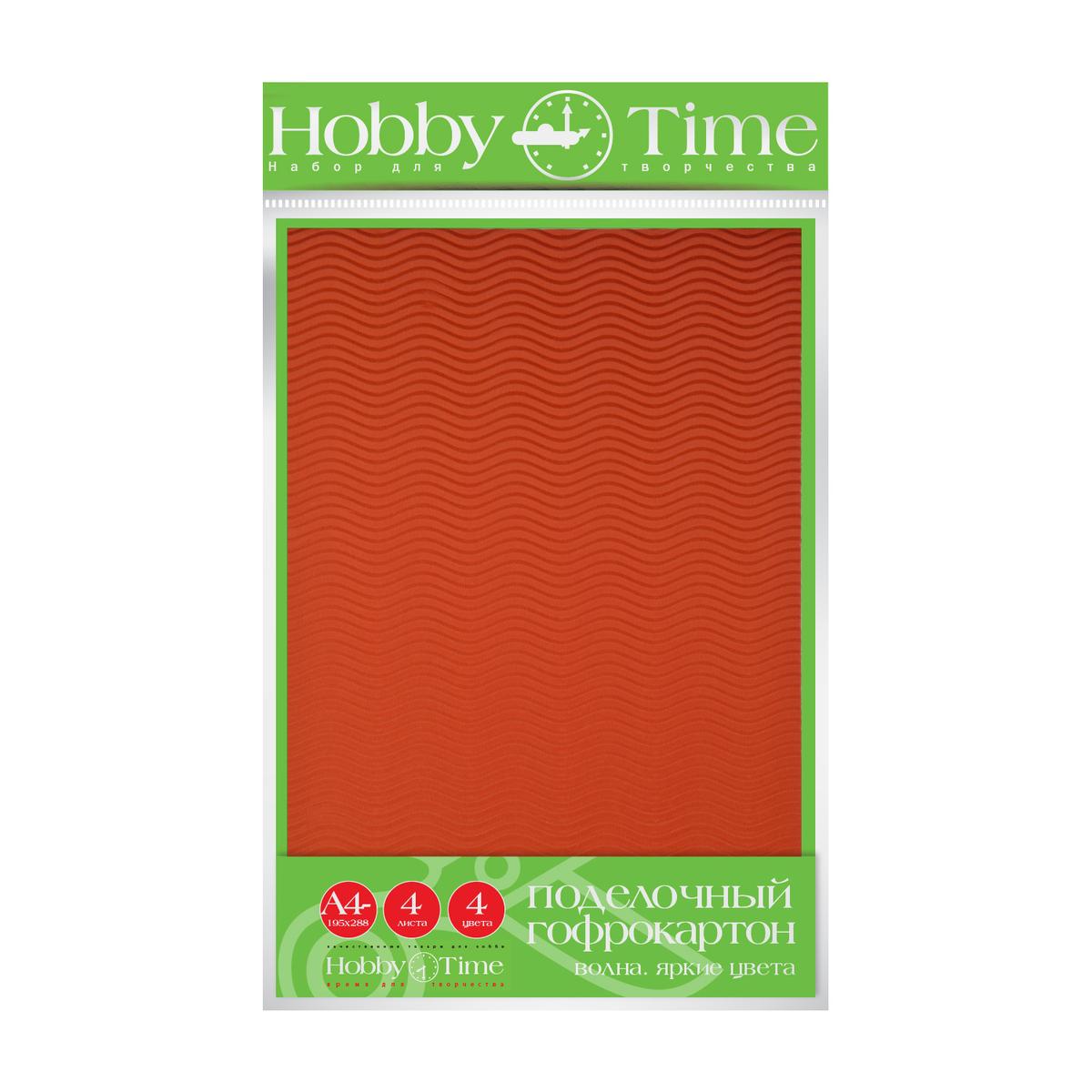 Гофрокартон А4 "Волна. Яркие Цвета", 4 листа, 4 цвета, для поделок