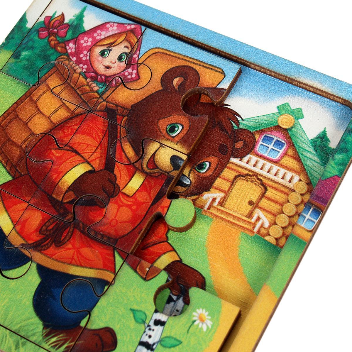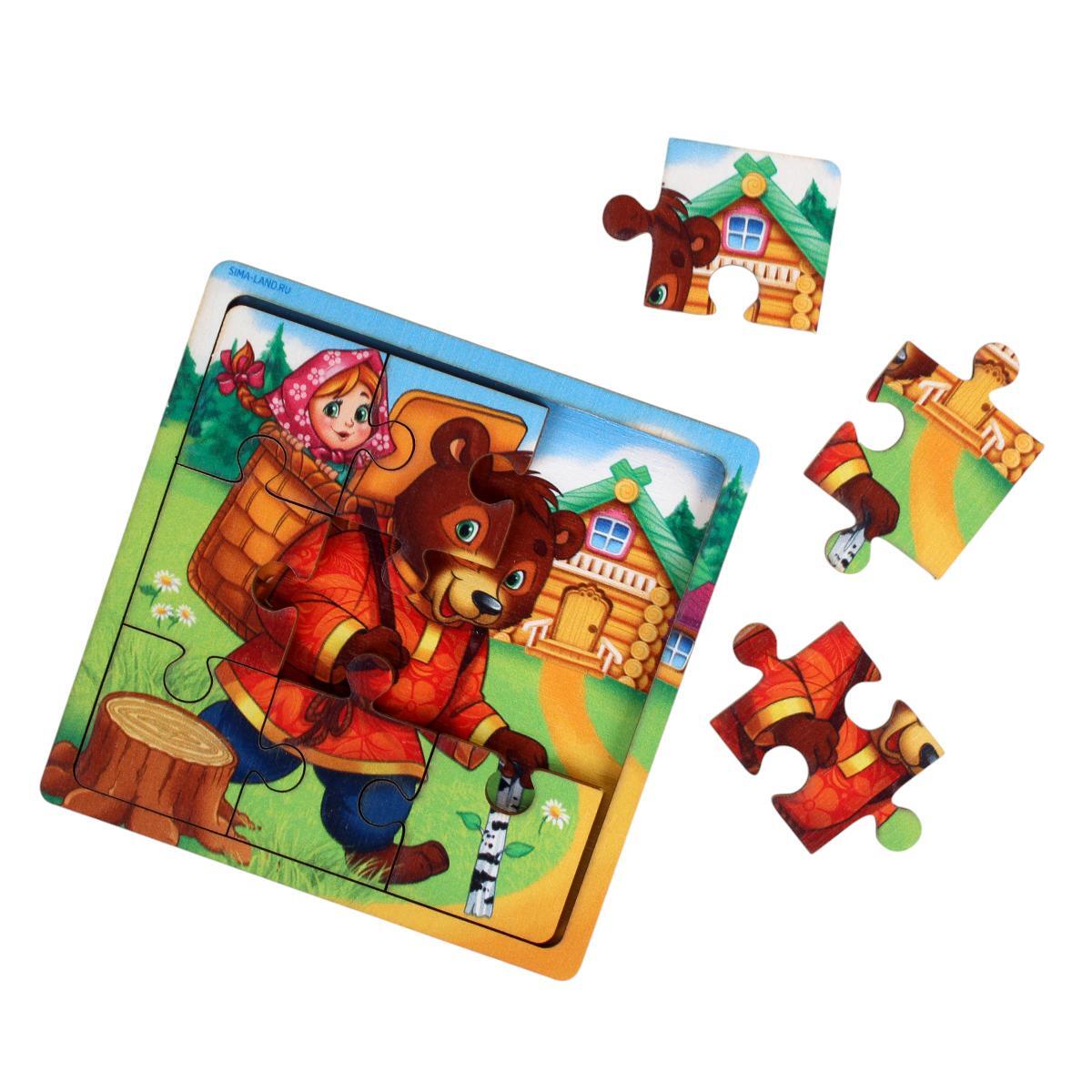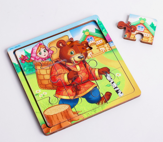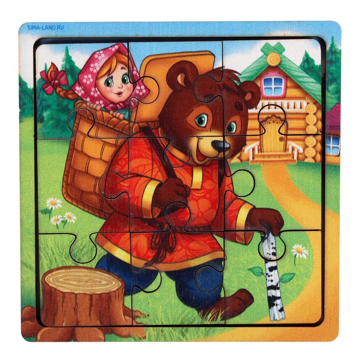 Пазл деревянный в рамке «Маша и медведь», 9 деталей, 10х10 см, для детей от 3 лет