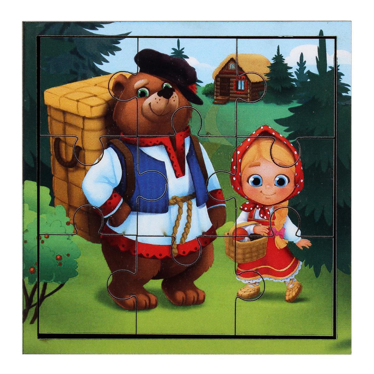 Головоломка-пазл "Миша и Маша", дерево, 9 деталей, развивающая игра в дорогу