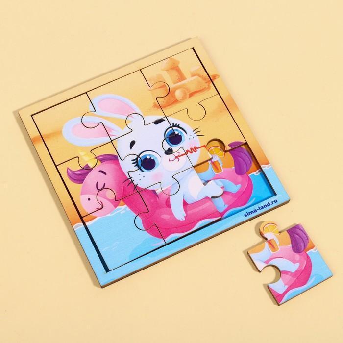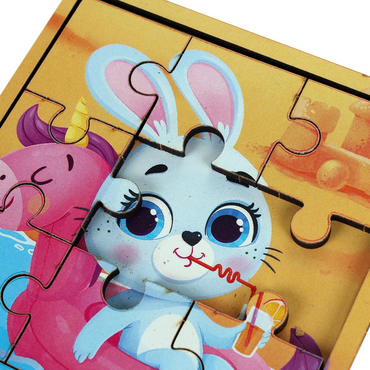 Этот деревянный пазл из 9 деталей предназначен для малышей, начинающих знакомство с логическими играми. Собирая изображение кролика на пляже, ребенок развивает внимание, моторику ручек, память и умение различать цвета. Пазл собирается в удобной рамке, внутри которой есть изображение-подсказка, что помогает ребенку быстрее понять и сложить картинку.