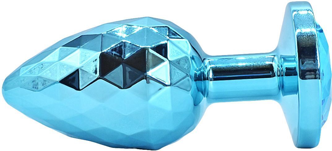 Анальная пробка металлическая текстурная с кристаллом, голубая, 6х2.5 см, для комфортной стимуляции
