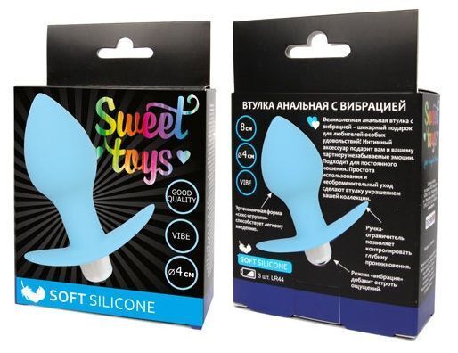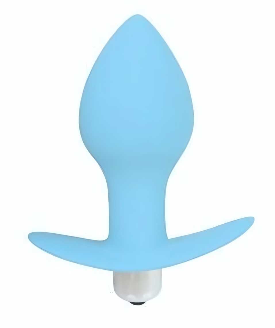 Анальный стимулятор с вибрацией, силикон, голубой, 8х4 см, эргономичный дизайн, батарейки LR44
