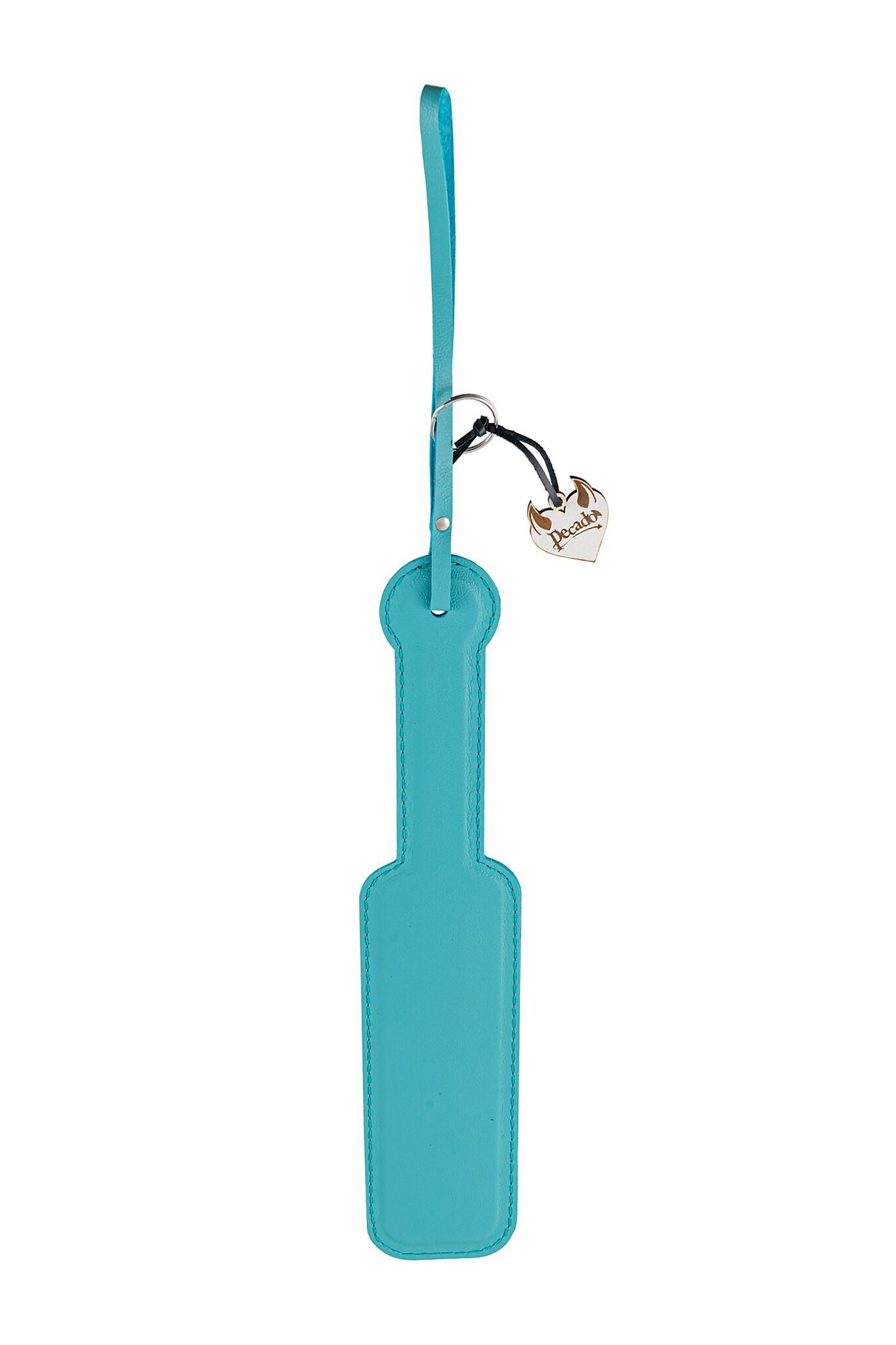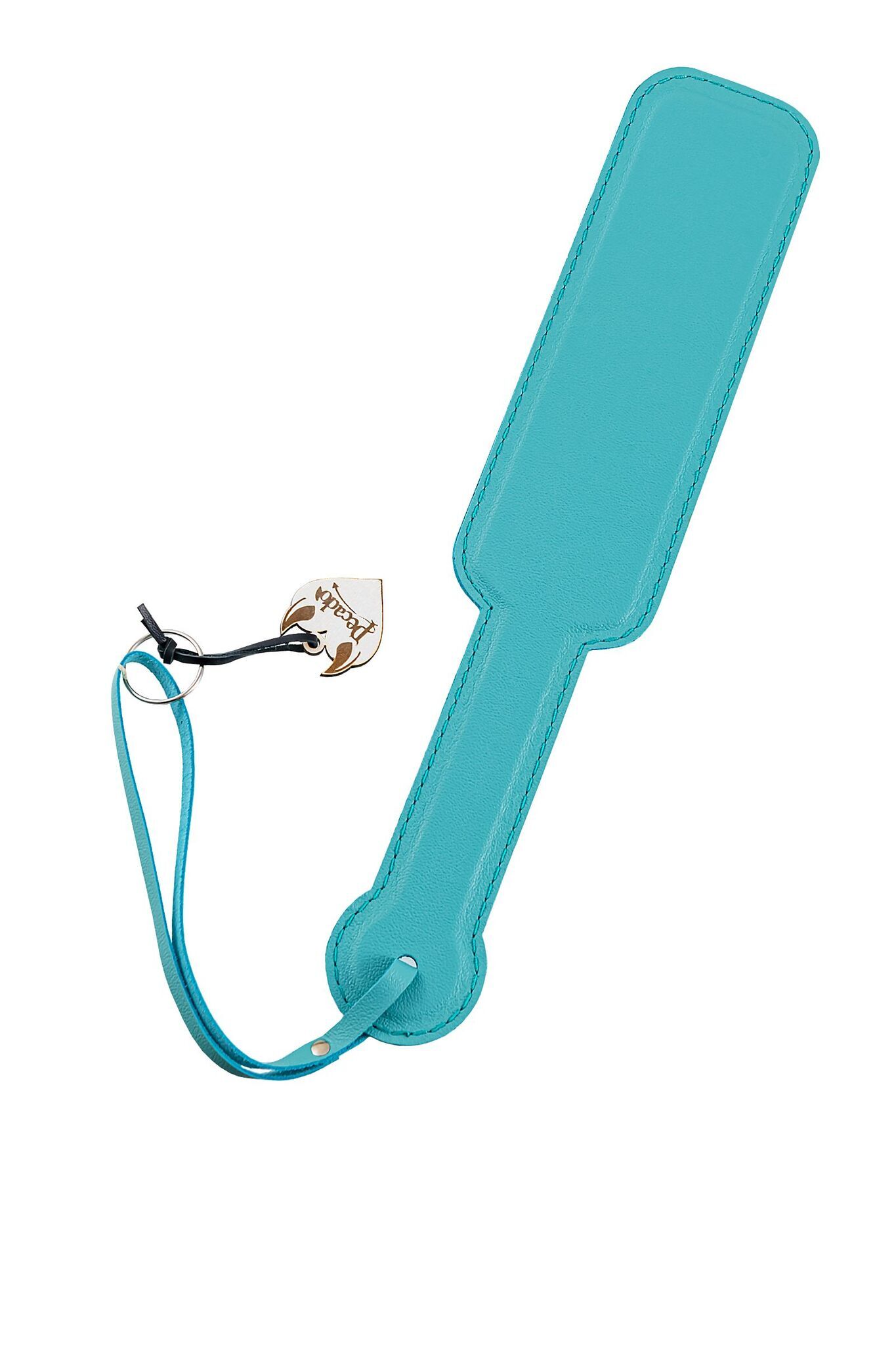 Пэддл для BDSM «Pecado», натуральная кожа, голубой, 37 см, мягкий, удобная ручка