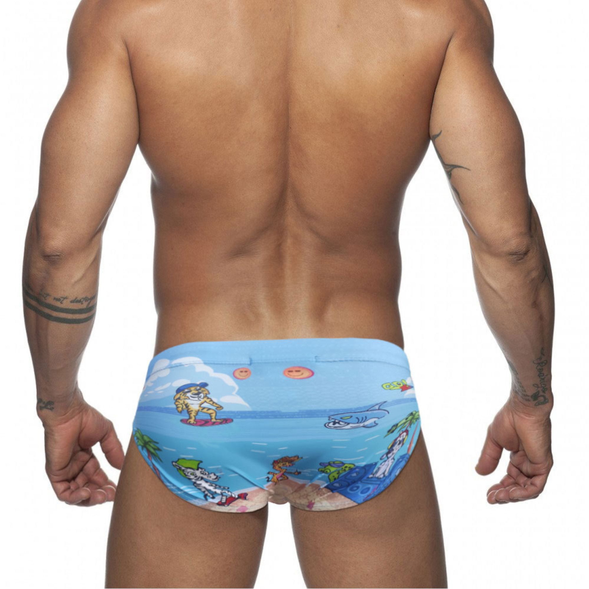 Голубые мужские плавки-брифы с мультяшным принтом