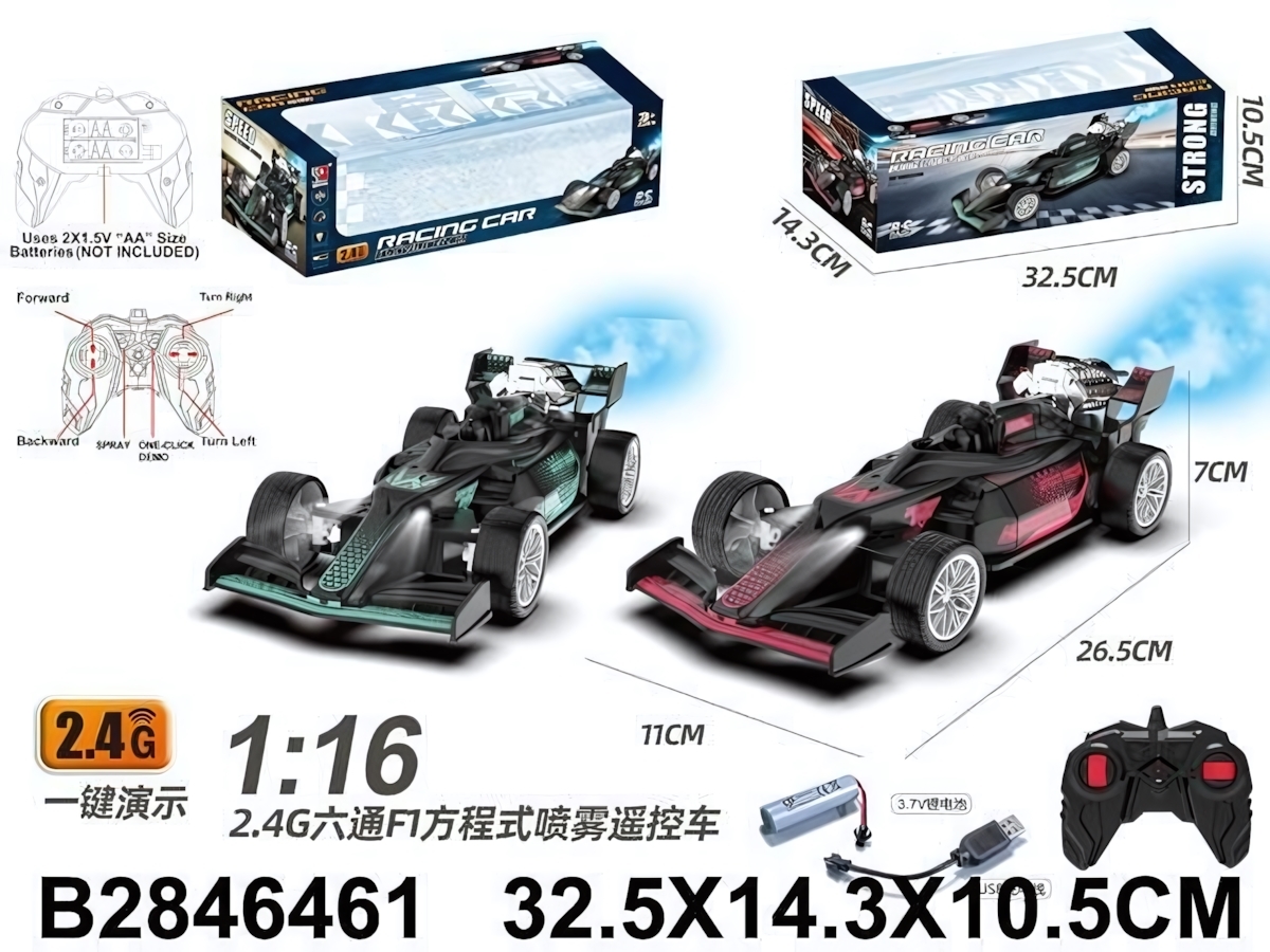 Гоночная машина на РУ, распылитель тумана, пластик, размер 32.5х14.3х10.5см