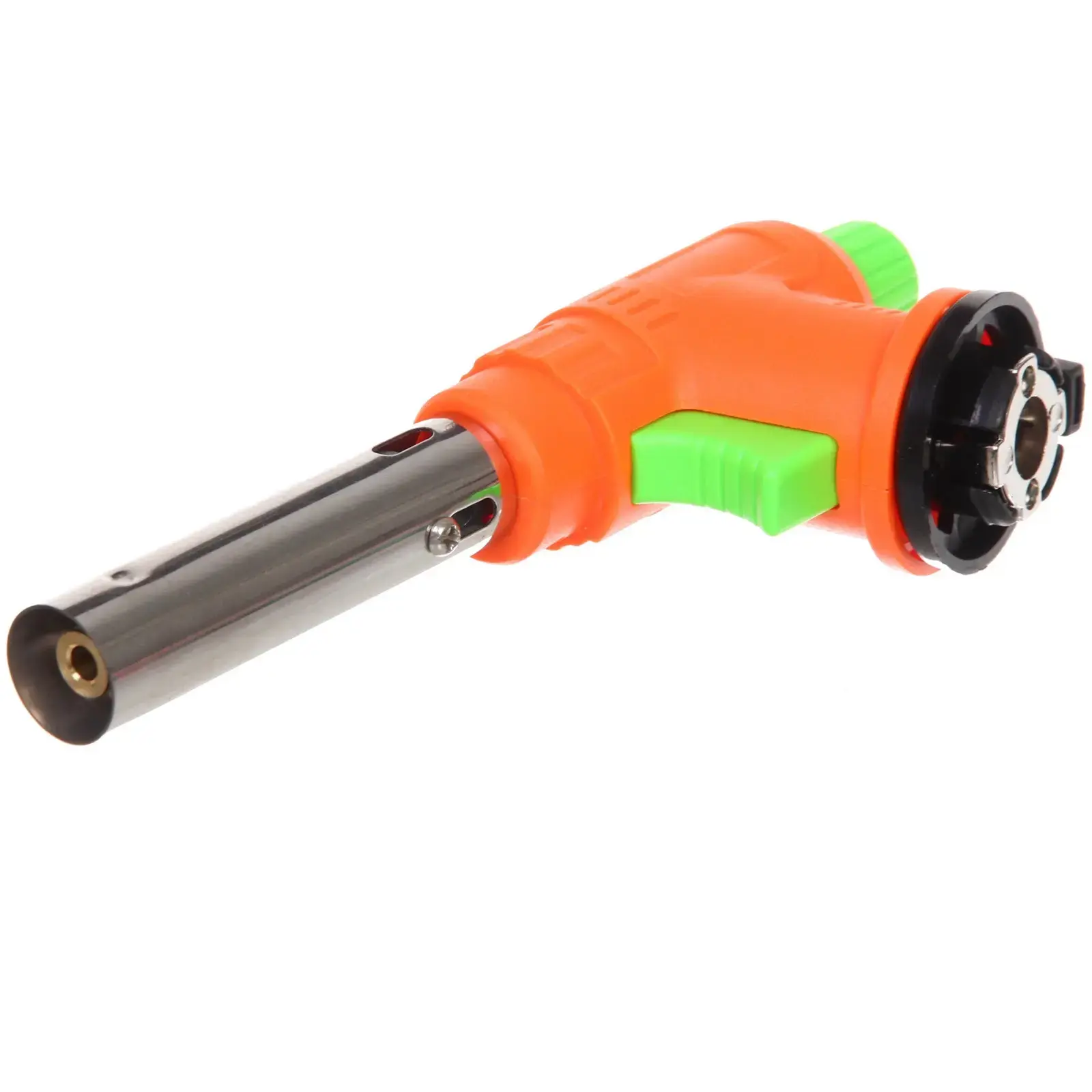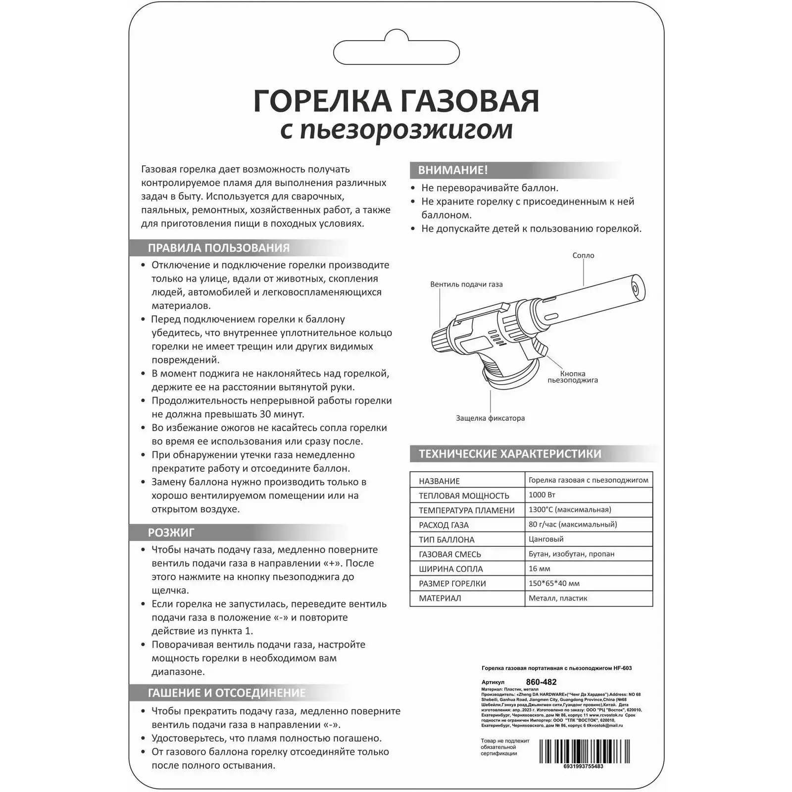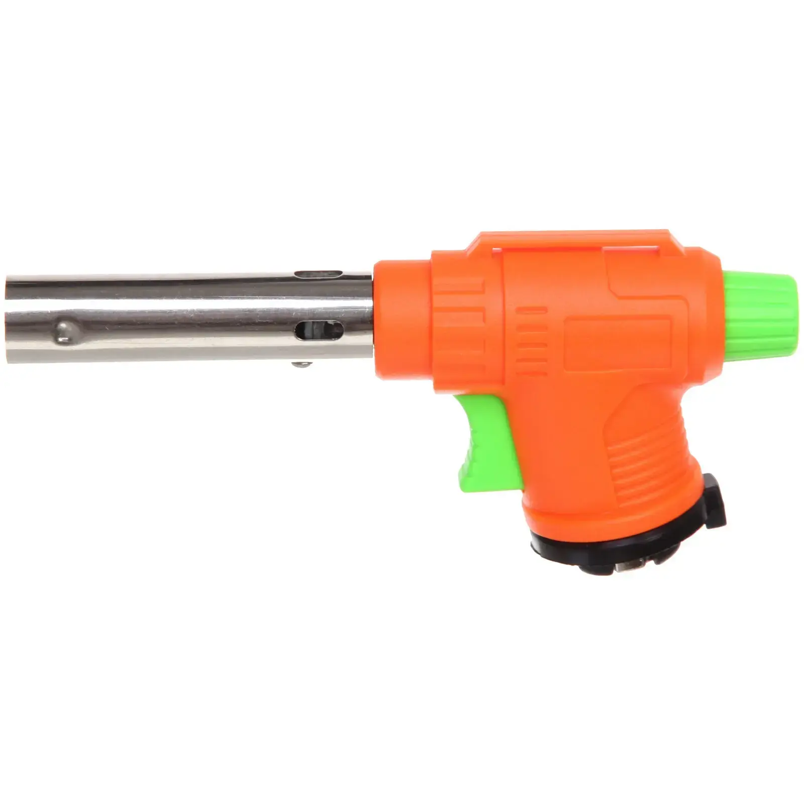 Горелка имеет ярко-оранжевый корпус с зелеными элементами, что делает ее заметной и стильной. Металлическая часть горелки блестящая и устойчива к коррозии. Упаковка содержит инструкции по безопасному использованию и правила эксплуатации, что делает ее подходящей даже для новичков. Не забывайте, что продолжительность непрерывной работы горелки не должна превышать 30 минут, чтобы избежать перегрева.
