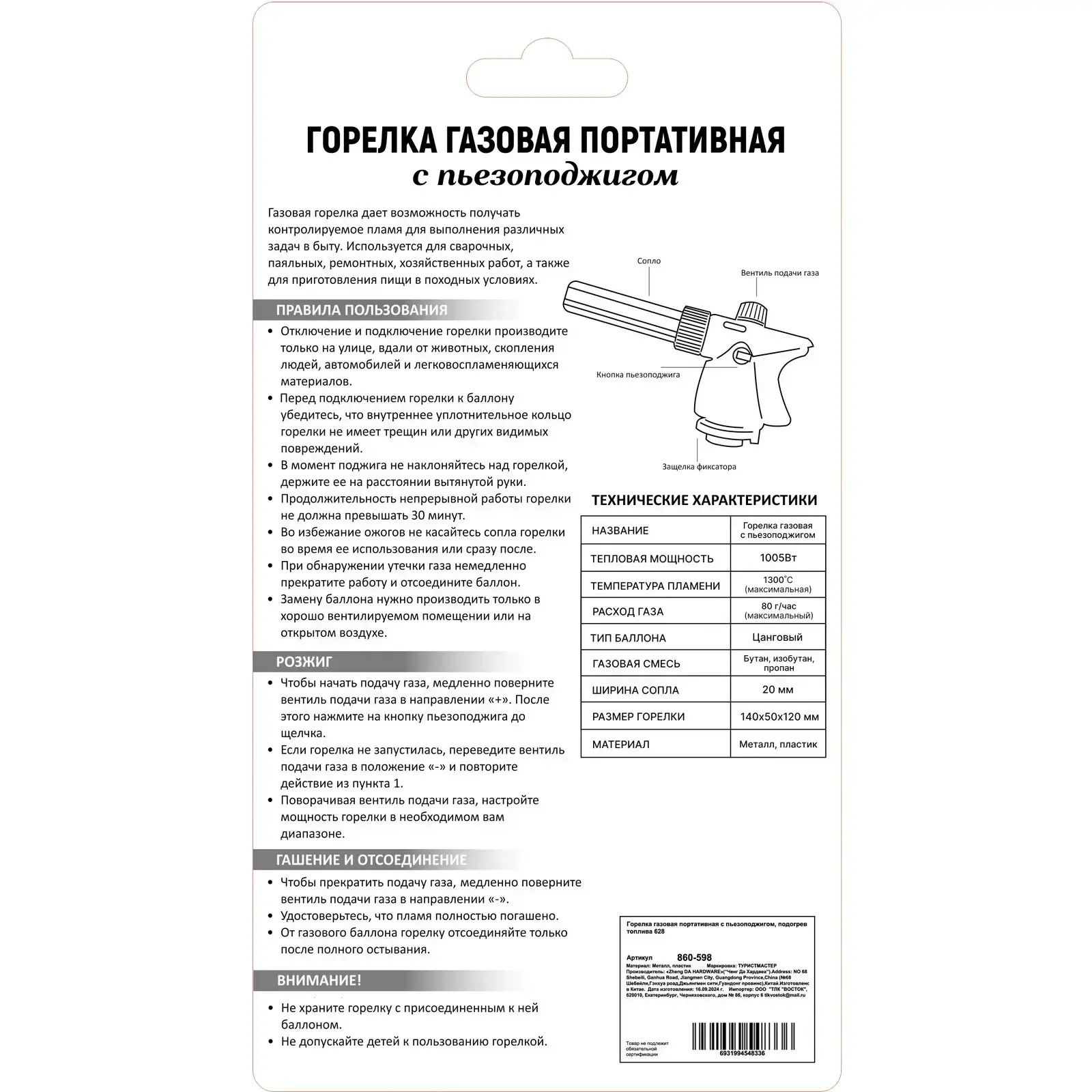 Горелка газовая «ТуристМастер» с пьезоподжигом, регулировка пламени, металл/пластик, 1300°C, цанговый баллон